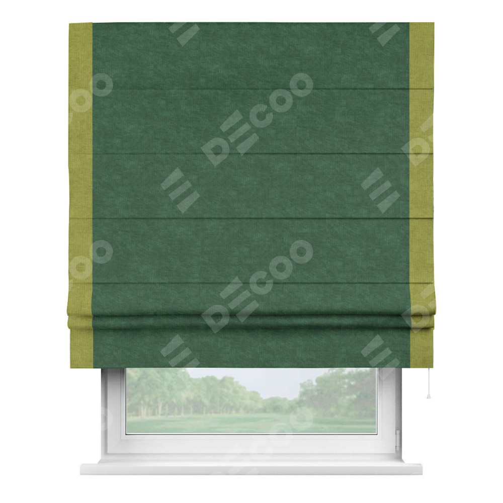 Римская штора «Кортин» для проема, канвас тёмно-зелёный, с кантом Стрим Дуо