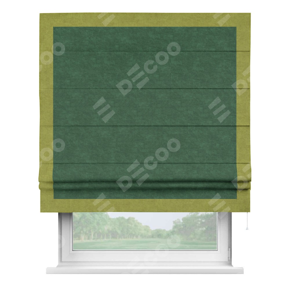 Римская штора «Кортин» для проема, канвас тёмно-зелёный, с кантом Чесс