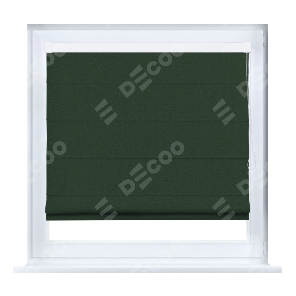 Римская штора производителя «Cortin», устанавливается на створку окна, пошита из ткани канвас глубокий зелёный, артикул v-588. Штора шьётся по индивидуальным размерам, для данного типа римской шторы возможная ширина от 35 до 150 см., высота до 250 см.
