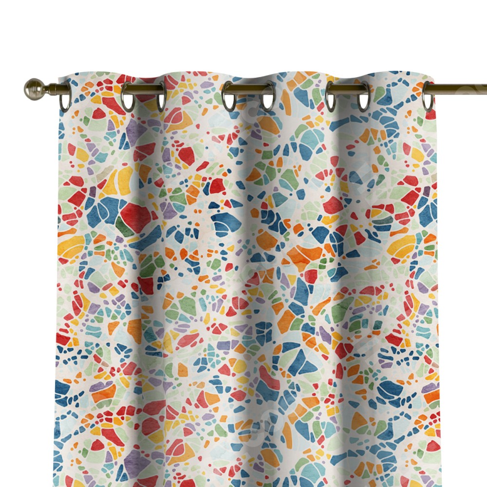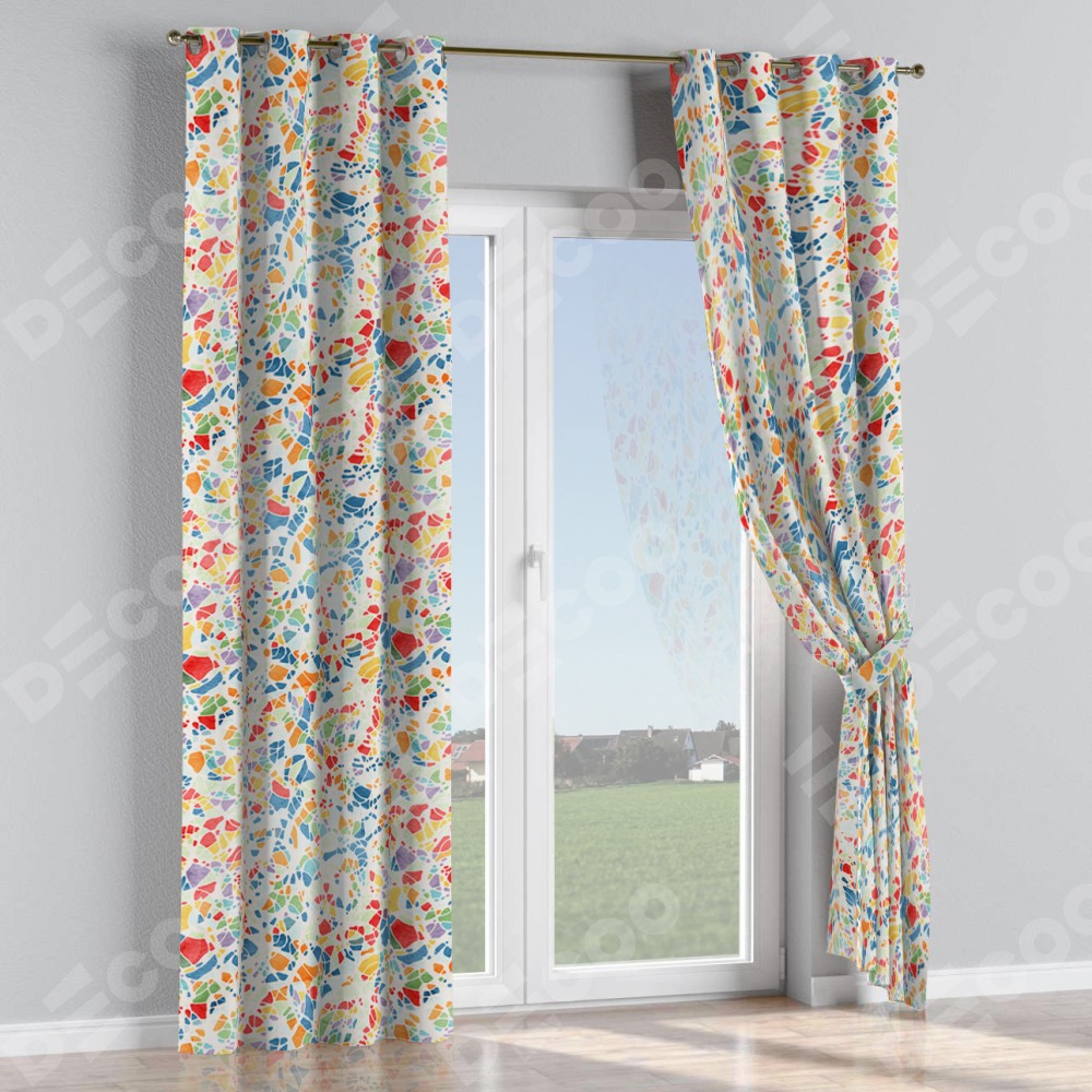Комплект прямых штор, от производителя «Cortin», пошиты из ткани блэкаут с нанесением сублимационной печати «Калейдоскоп». Данная модель пошита на люверсах, комплектуется на выбор круглым карнизом и подходит для монтажа на стену или потолок. Прямые шторы на люверсах шьются по стандарту с коэффициентом 1/2 (на 100 см. ширины проёма 200 см. ширины ткани), отличительным преимуществом данной модели является простой способ монтажа. Достаточно повесить ее на трубу и штора готова!