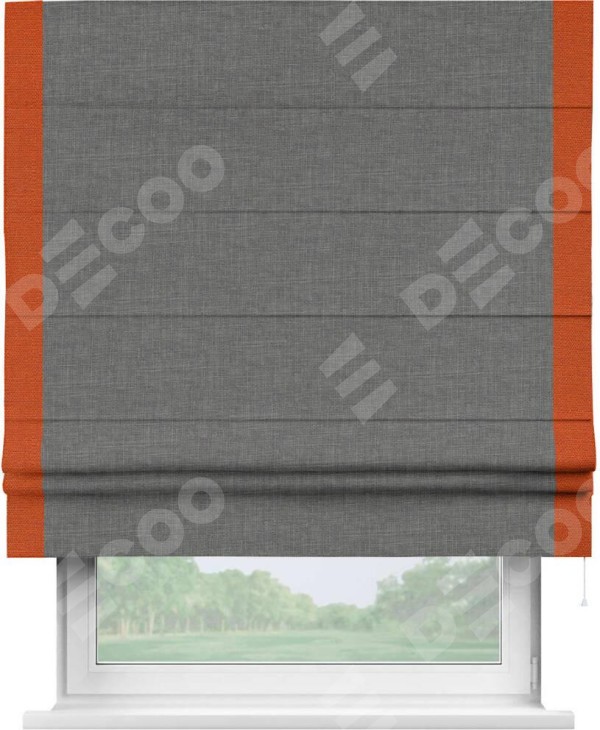 Римская штора «Кортин» с кантом Стрим Дуо, для проема, лён тёмно-серый