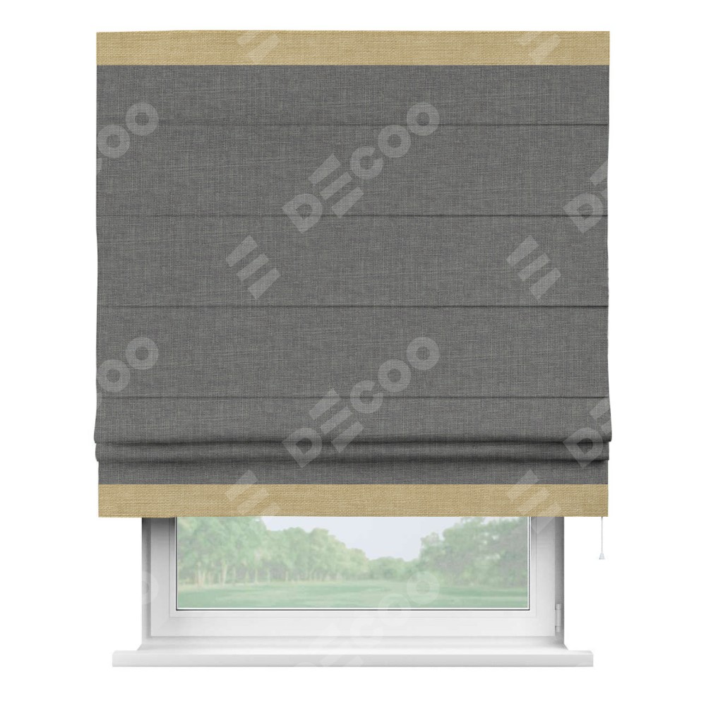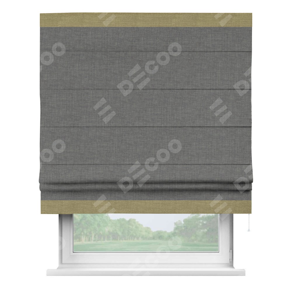 Римская штора «Кортин» с кантом Горизонт, для проема, лён тёмно-серый