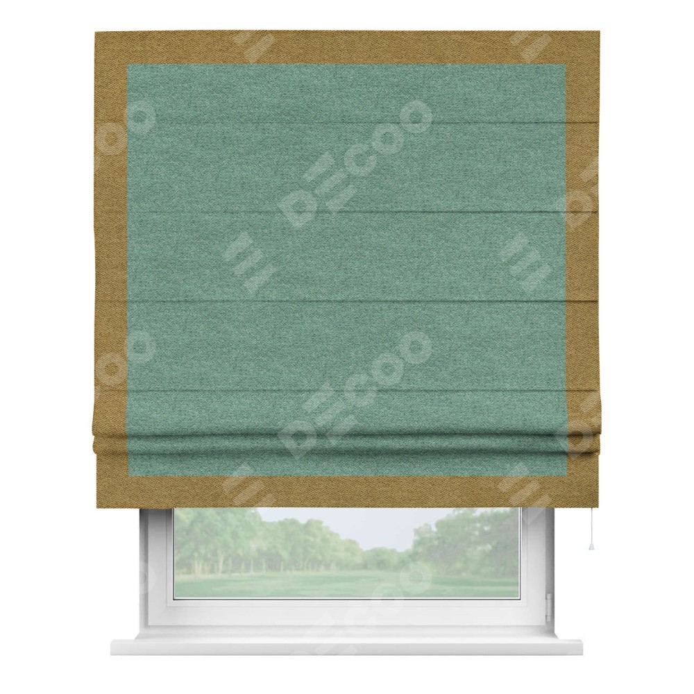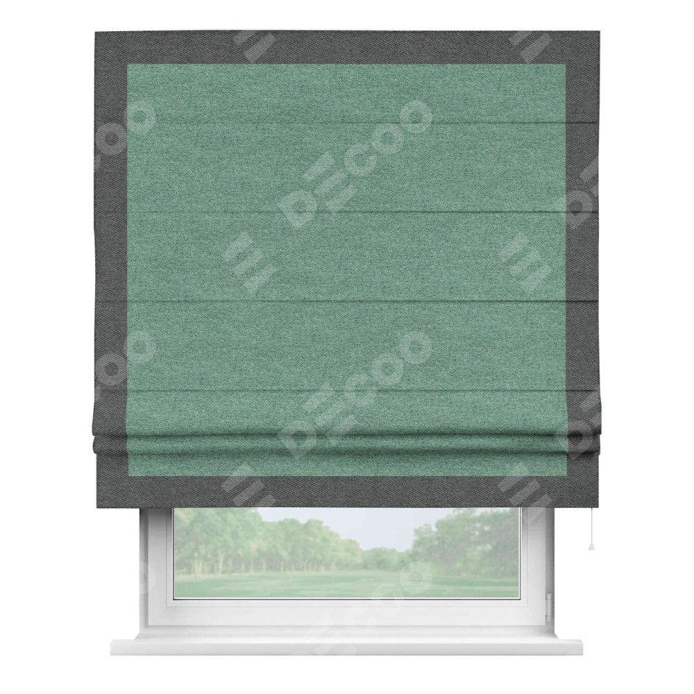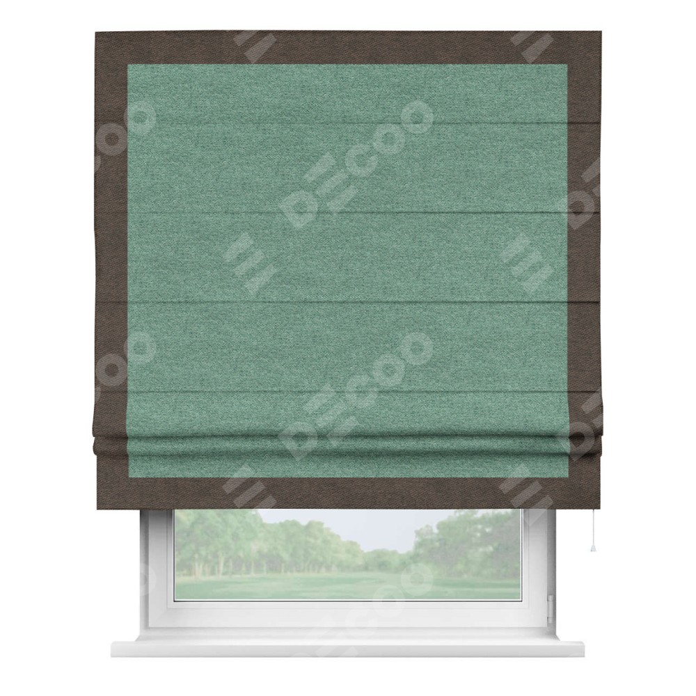 Римская штора «Кортин» с кантом Чесс, для проема, твид блэкаут бирюзовый