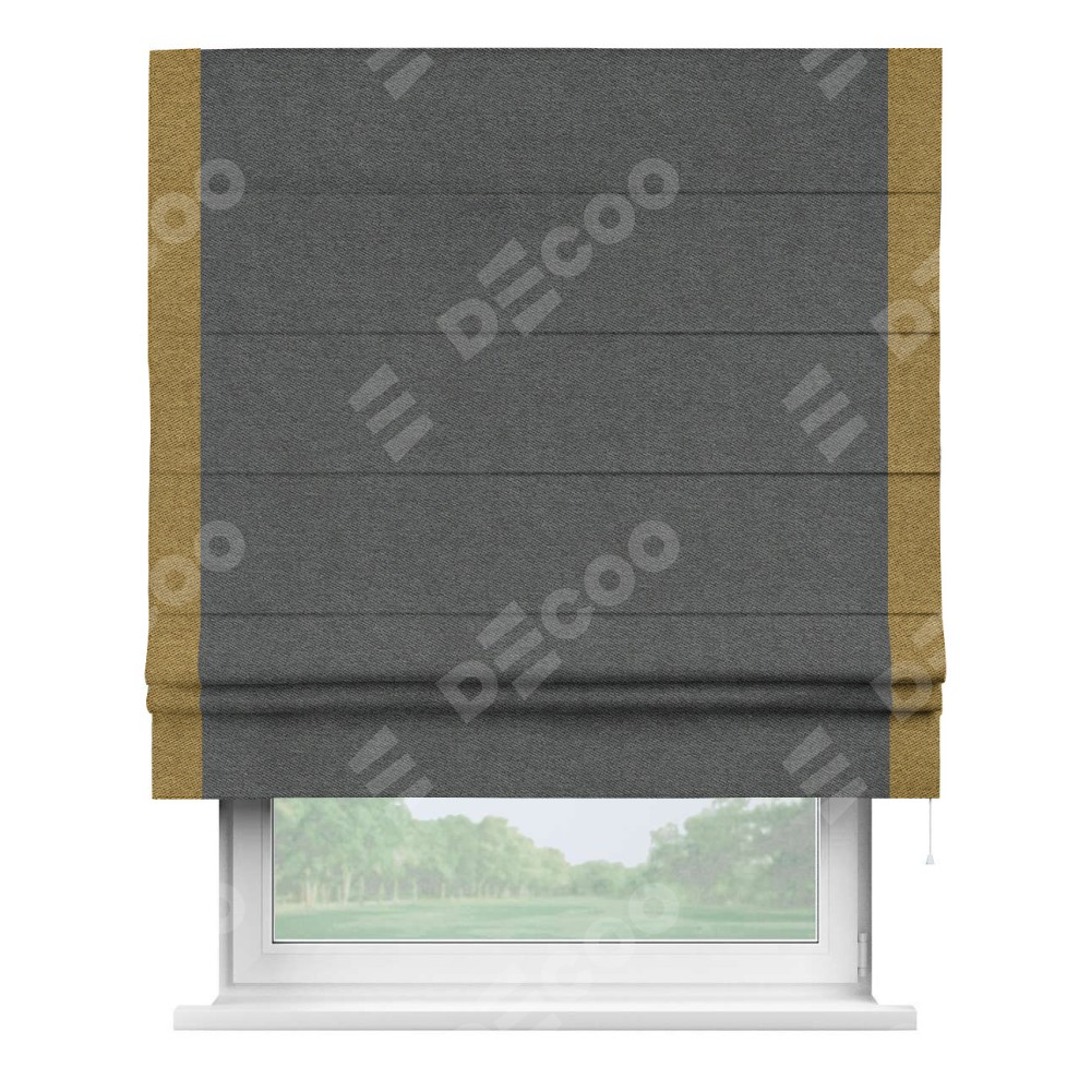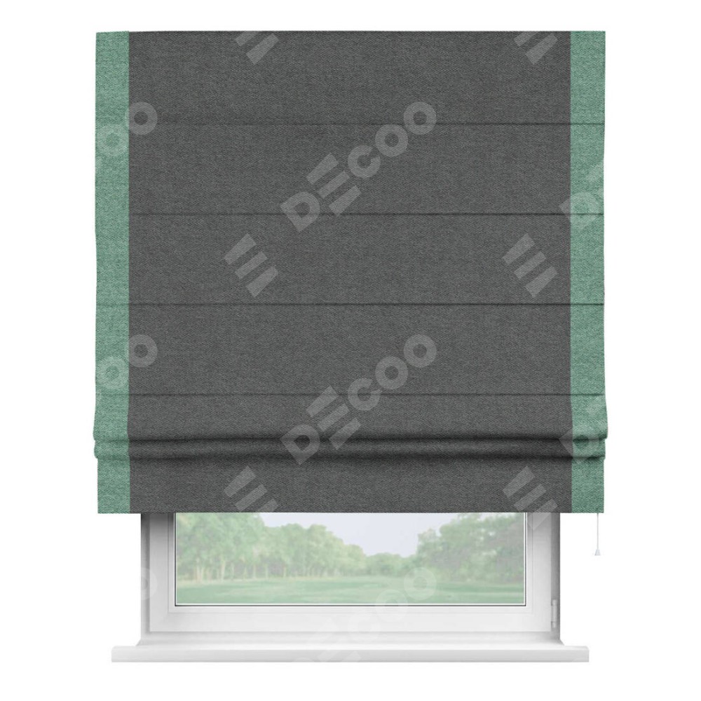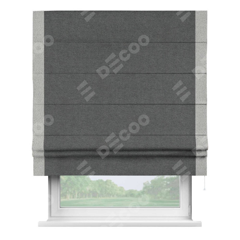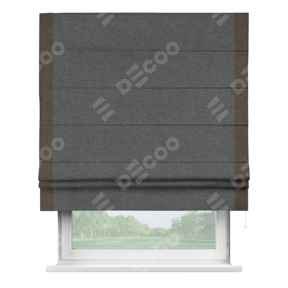 Римская штора «Кортин» для проема, твид блэкаут тёмно-серый, с кантом Стрим Дуо