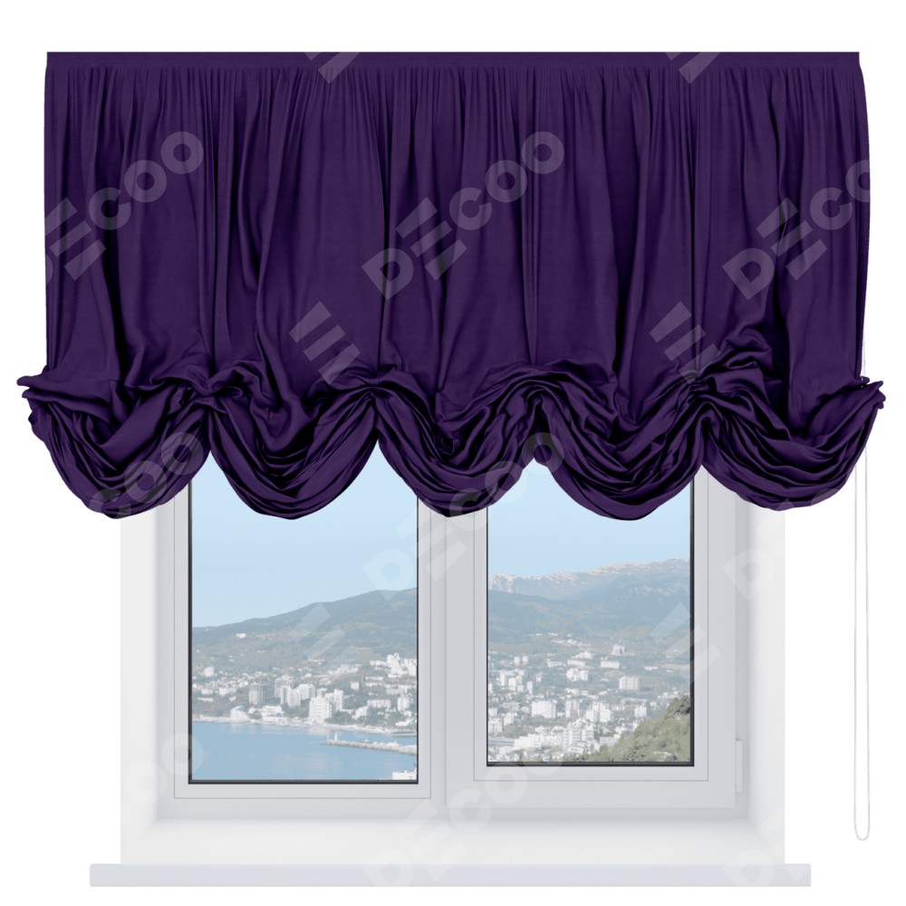 Австрийская штора производителя «Cortin», используется для проёма, пошита из ткани вельвет тёмно-фиолетовый, артикул ткани 17753. Имеет универсальный механизм и подходит для монтажа: на потолок и на стену.