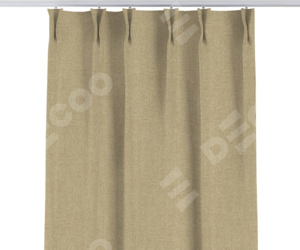 Комплект прямых штор, от производителя «Cortin», пошиты из ткани лён димаут песочный, артикул ткани 16256. С изнаночной стороны в верхней части штор пристрачивается шторная лента с декоративными складками «Кустик». Для создания элегантных складок прямые шторы шьются по стандарту с коэффициентом 1:2 (на 100 см. ширины проёма 200 см. ширины ткани).
