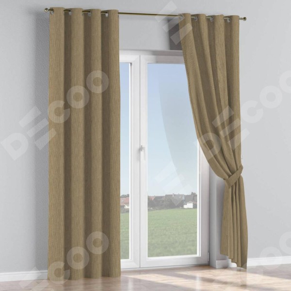 Комплект прямых штор, от производителя «Cortin», пошиты из ткани лён димаут тёмно-бежевый, артикул ткани 16261. Данная модель пошита на люверсах, комплектуется на выбор круглым карнизом и подходит для монтажа на стену или потолок. Прямые шторы на люверсах шьются по стандарту с коэффициентом 1/2 (на 100 см. ширины проёма 200 см. ширины ткани), отличительным преимуществом данной модели является простой способ монтажа. Достаточно повесить ее на трубу и штора готова!