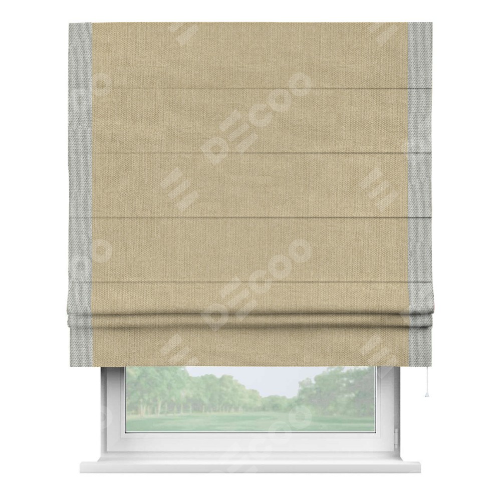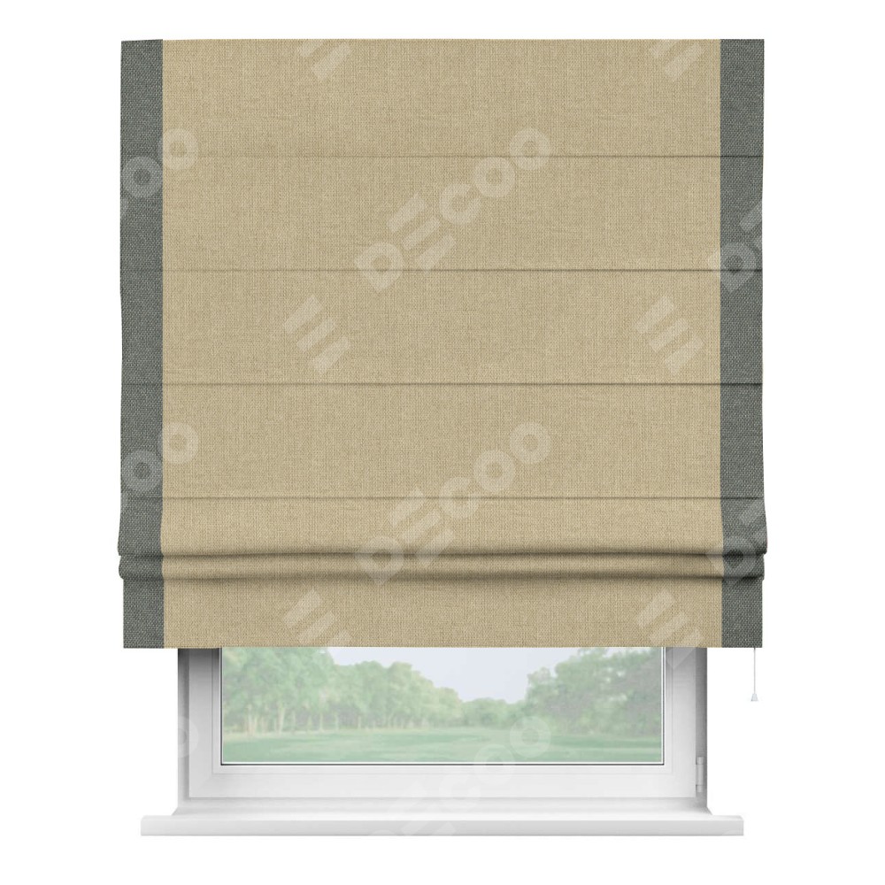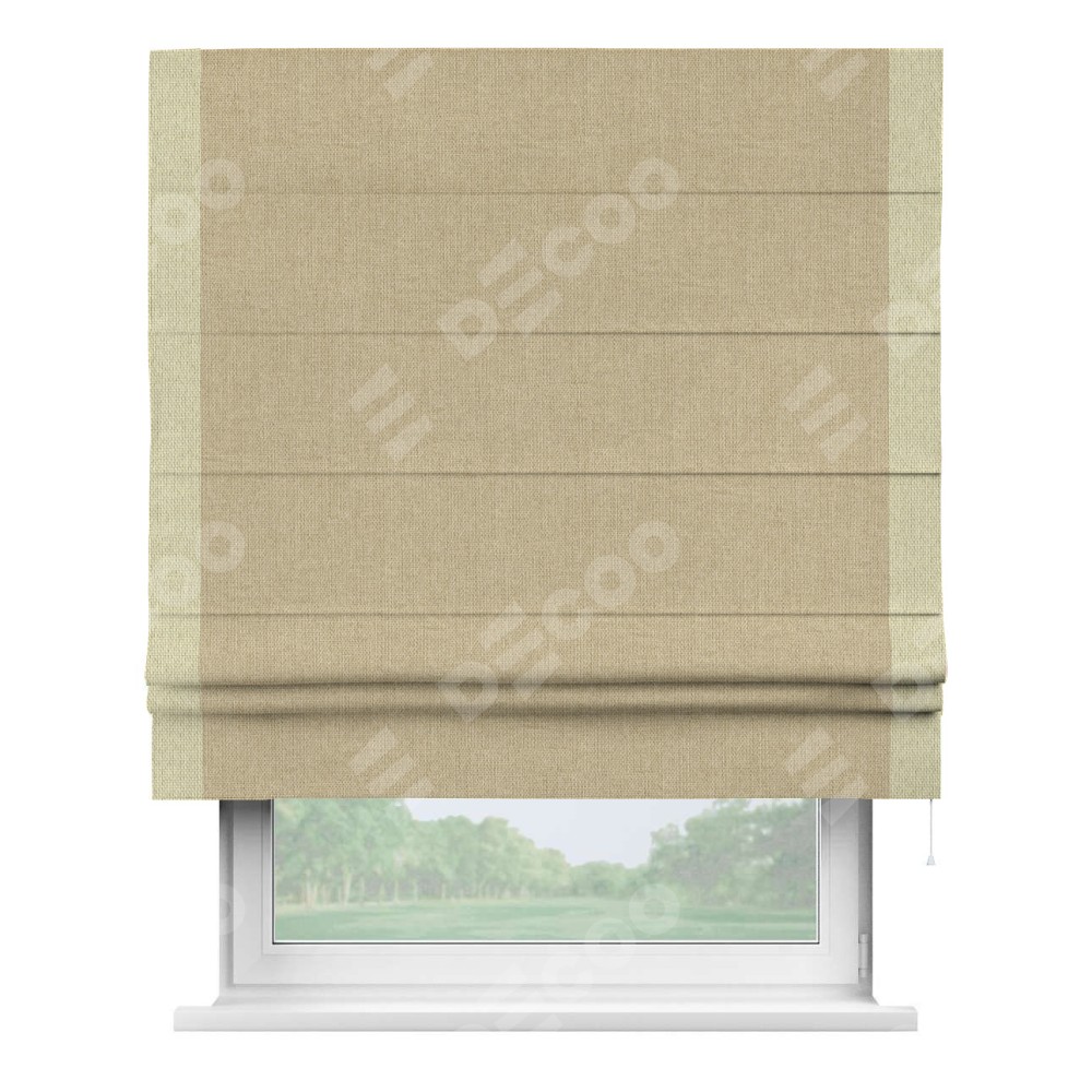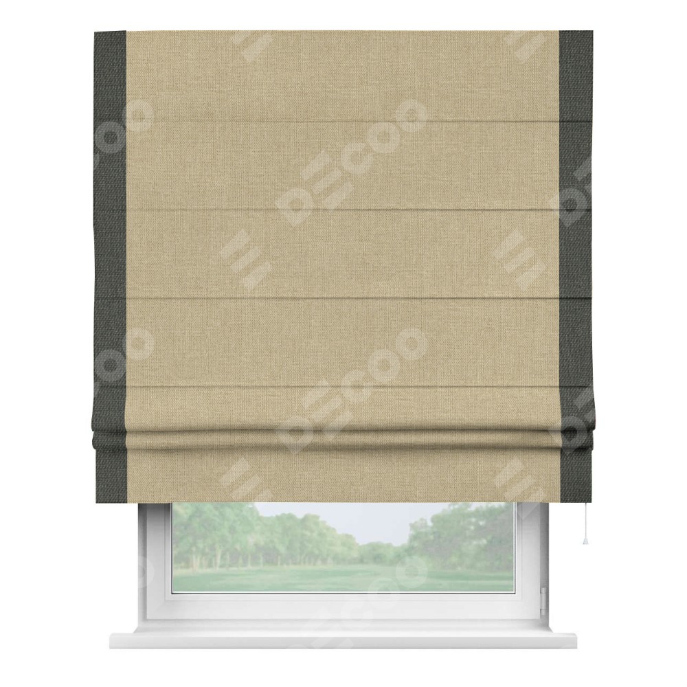 Римская штора «Кортин» для проема, лён димаут песочный с кантом Стрим Дуо