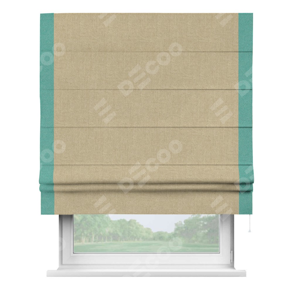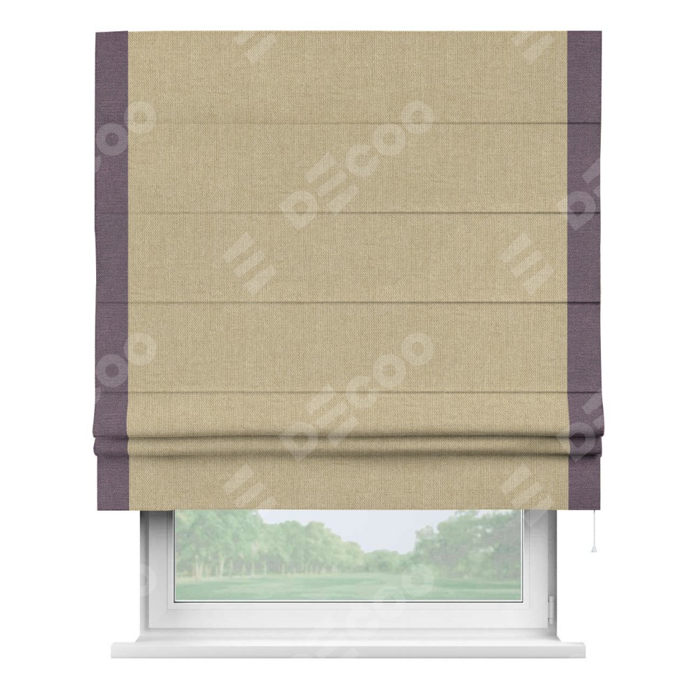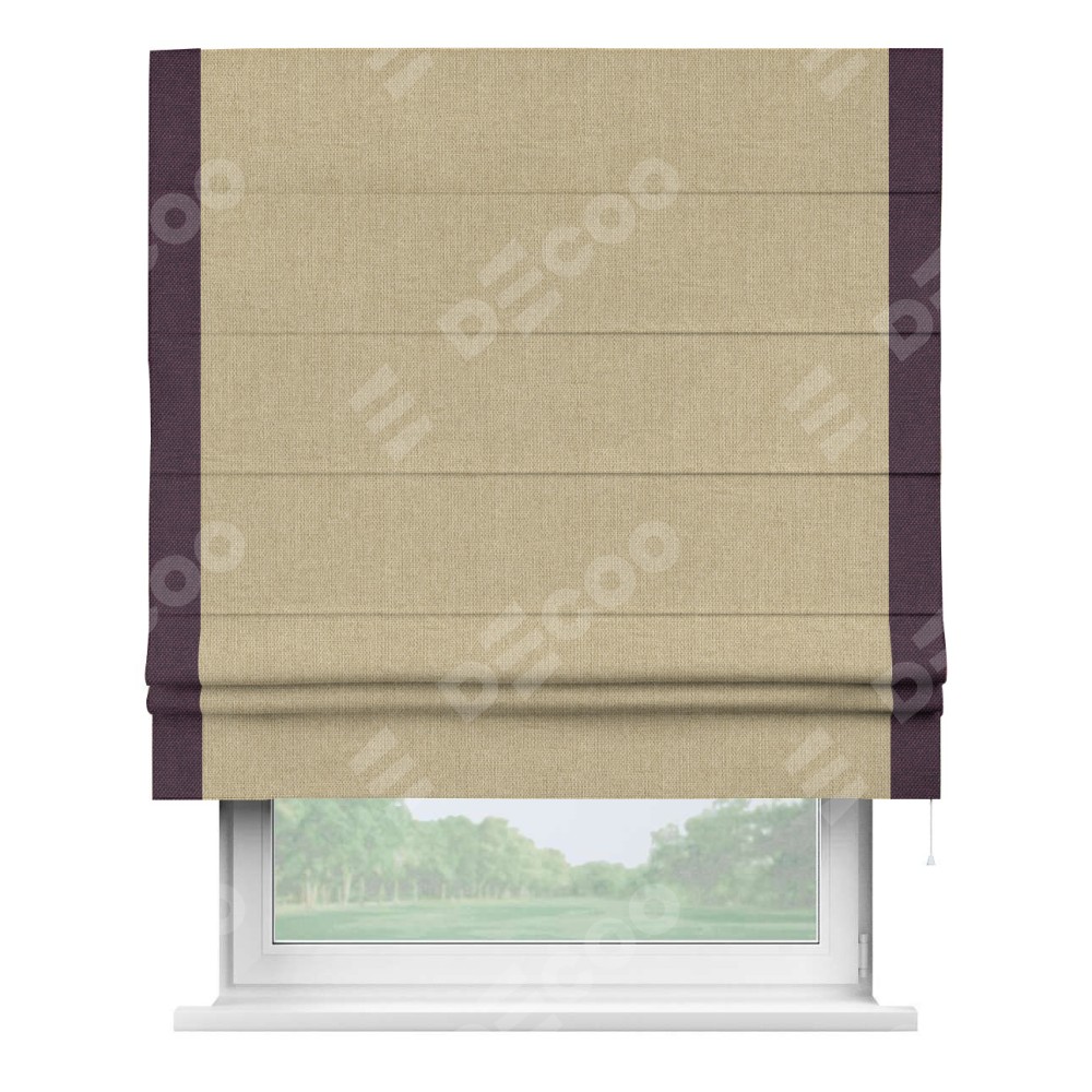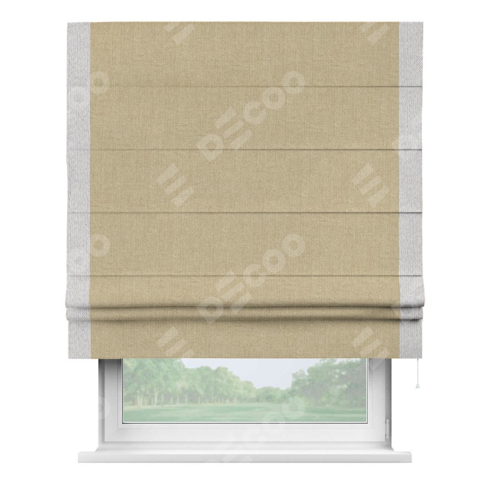 Римская штора «Кортин» для проема, лён димаут песочный с кантом Стрим Дуо