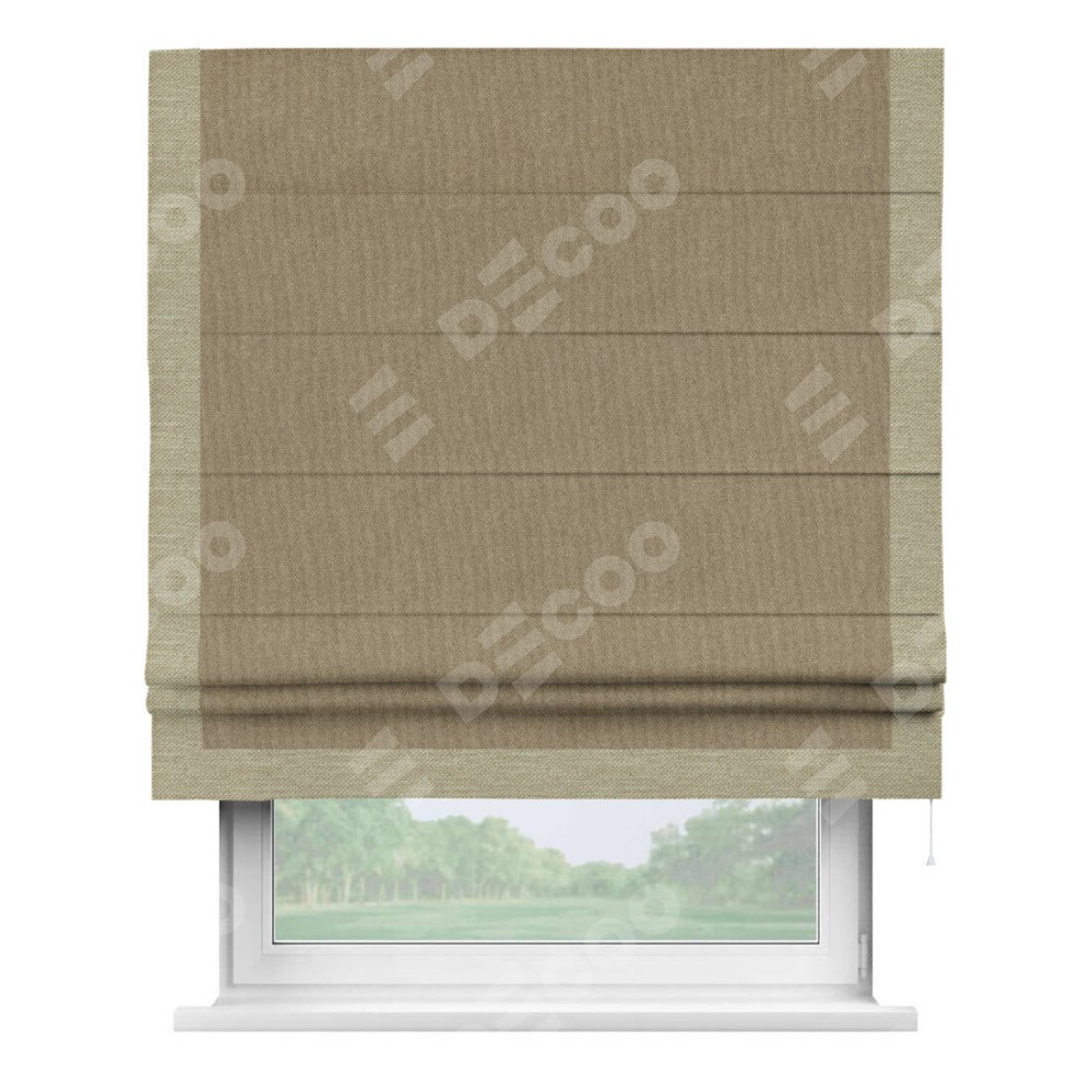 Римская штора «Кортин» для проема, лён димаут тёмно-бежевый с кантом Виктория
