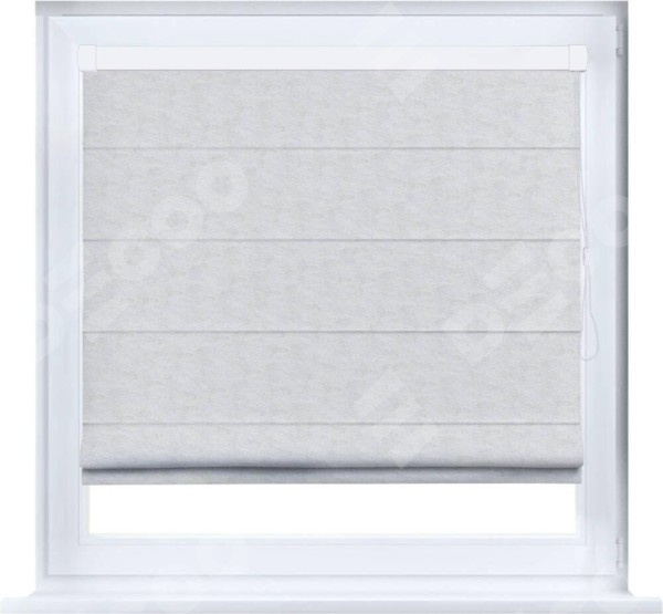 Римская штора производителя «Cortin», устанавливается на створку окна, пошита из ткани софт мрамор белый, артикул 93581. Штора шьётся по индивидуальным размерам, для данного типа римской шторы возможная ширина от 35 до 150 см., высота до 250 см.