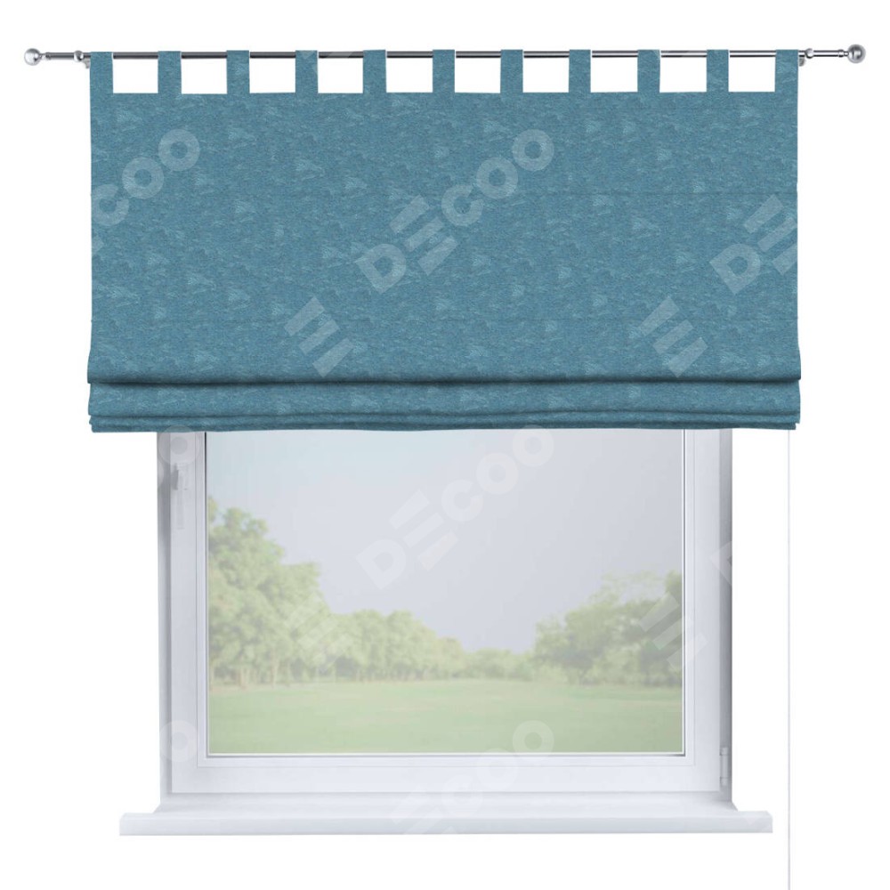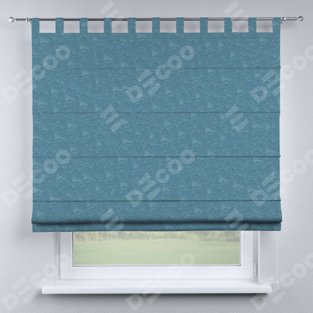 Римская штора производителя «Cortin», используется для проёма, пошита из ткани софт мрамор голубой, артикул ткани 93580. Данная модель пошита на петлях, комплектуется на выбор круглым карнизом и подходит для монтажа на стену. Римская штора на петлях имеет простую систему регулировки высоты, отличительным преимуществом данной модели является простой способ монтажа. Достаточно повесить ее на трубу и штора готова!
