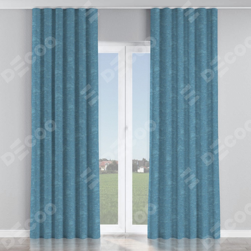Комплект прямых штор, от производителя «Cortin», пошиты из ткани софт мрамор голубой, артикул ткани 93580. С изнаночной стороны в верхней части штор пристрачивается шторная лента с декоративными складками «Волна». Для создания элегантных складок прямые шторы шьются по стандарту с коэффициентом 1:2 (на 100 см. ширины проёма 200 см. ширины ткани).