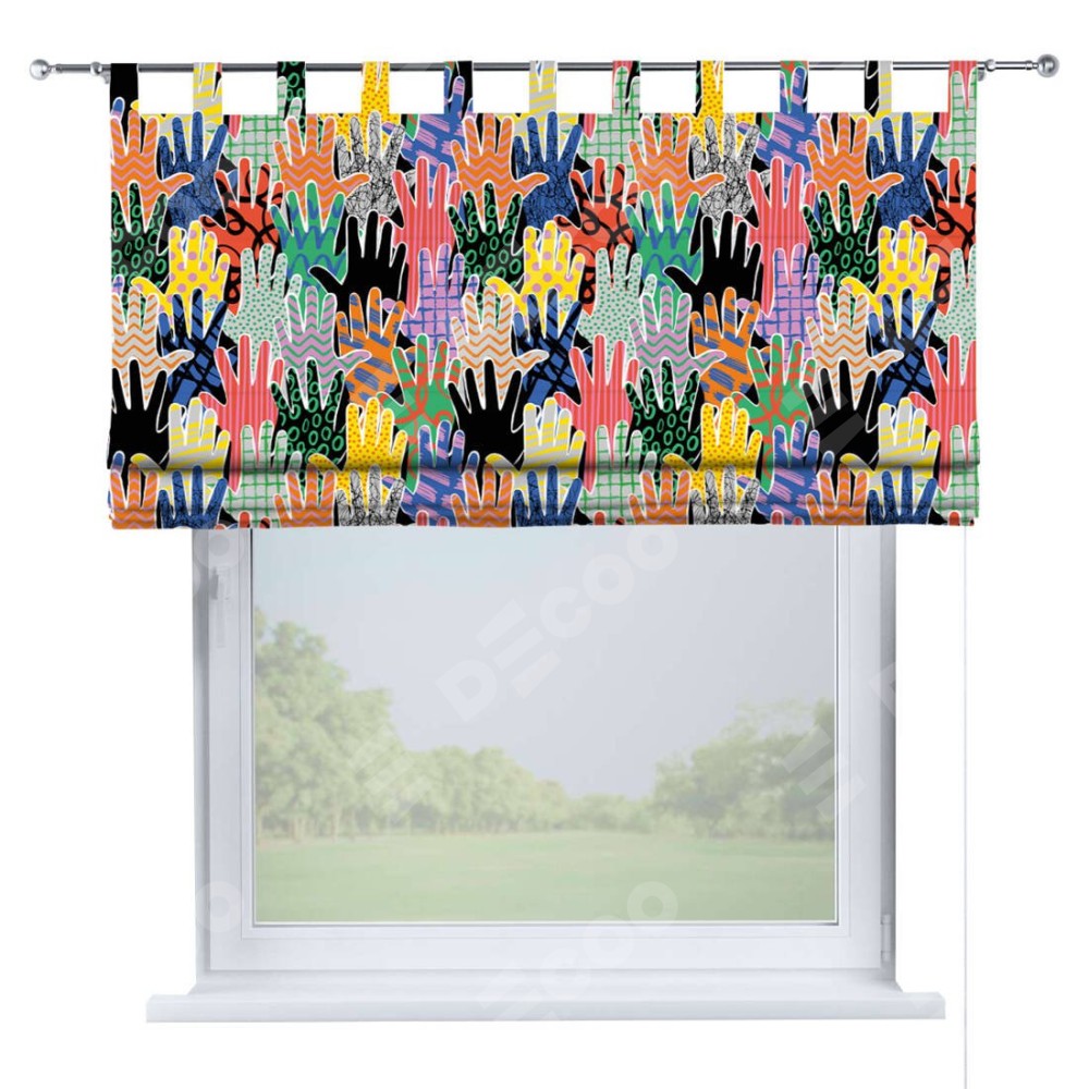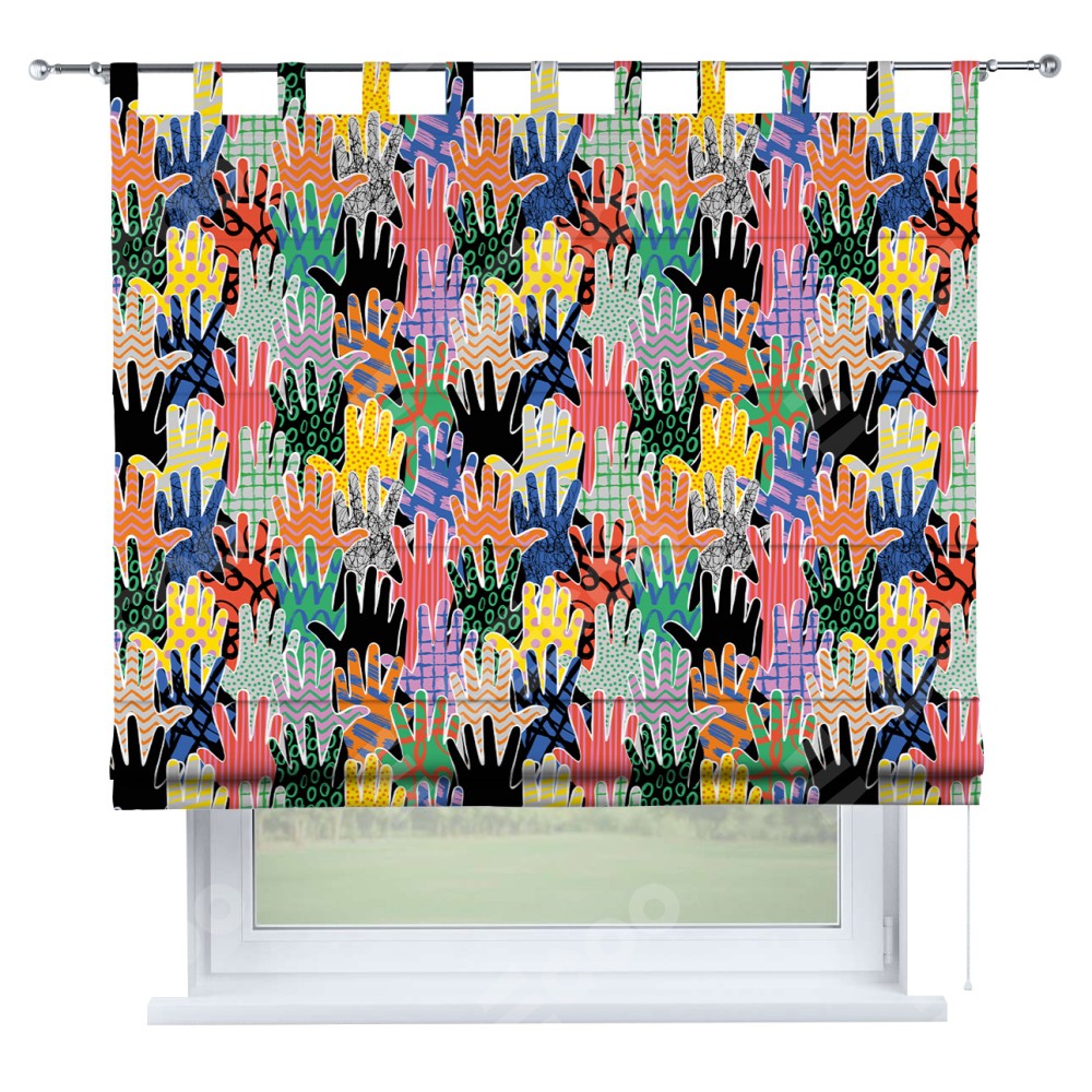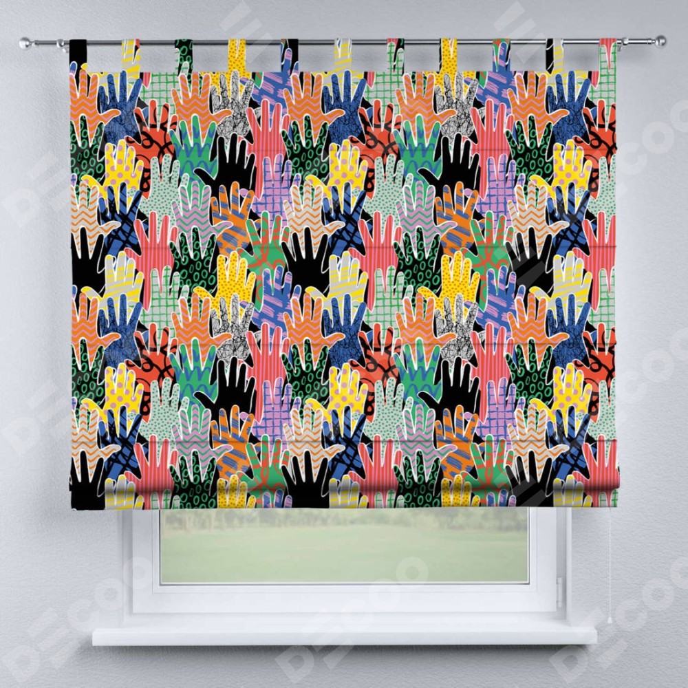 Римская штора производителя «Cortin», используется для проёма, пошита из ткани блэкаут с нанесением сублимационной печати «Коллаж поп-арт». Данная модель пошита на петлях, комплектуется на выбор круглым карнизом и подходит для монтажа на стену. Римская штора на петлях имеет простую систему регулировки высоты, отличительным преимуществом данной модели является простой способ монтажа. Достаточно повесить ее на трубу и штора готова!