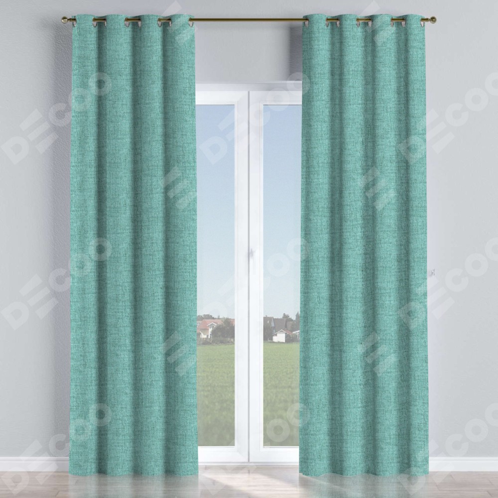 Комплект прямых штор, от производителя «Cortin», пошиты из ткани рогожка димаут аквамариновый крайола, артикул ткани 91023. Данная модель пошита на люверсах, комплектуется на выбор круглым карнизом и подходит для монтажа на стену или потолок. Прямые шторы на люверсах шьются по стандарту с коэффициентом 1/2 (на 100 см. ширины проёма 200 см. ширины ткани), отличительным преимуществом данной модели является простой способ монтажа. Достаточно повесить ее на трубу и штора готова!