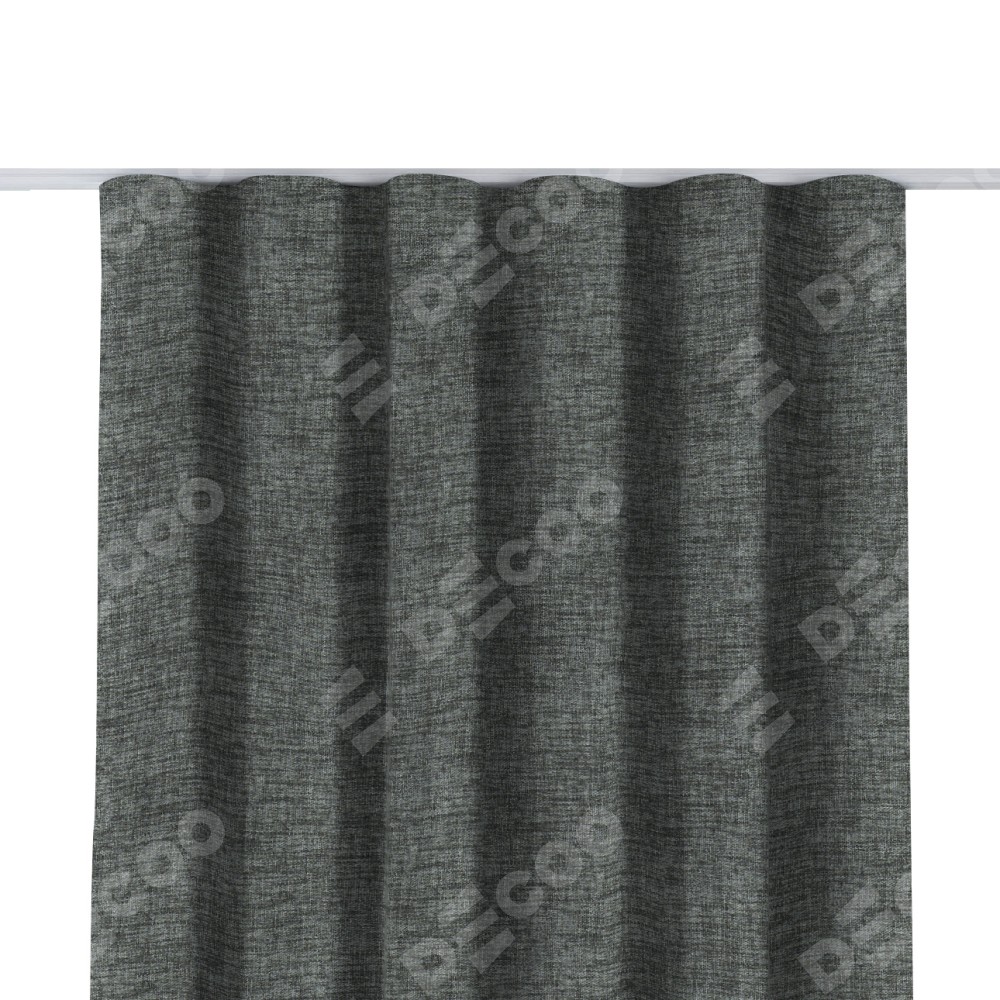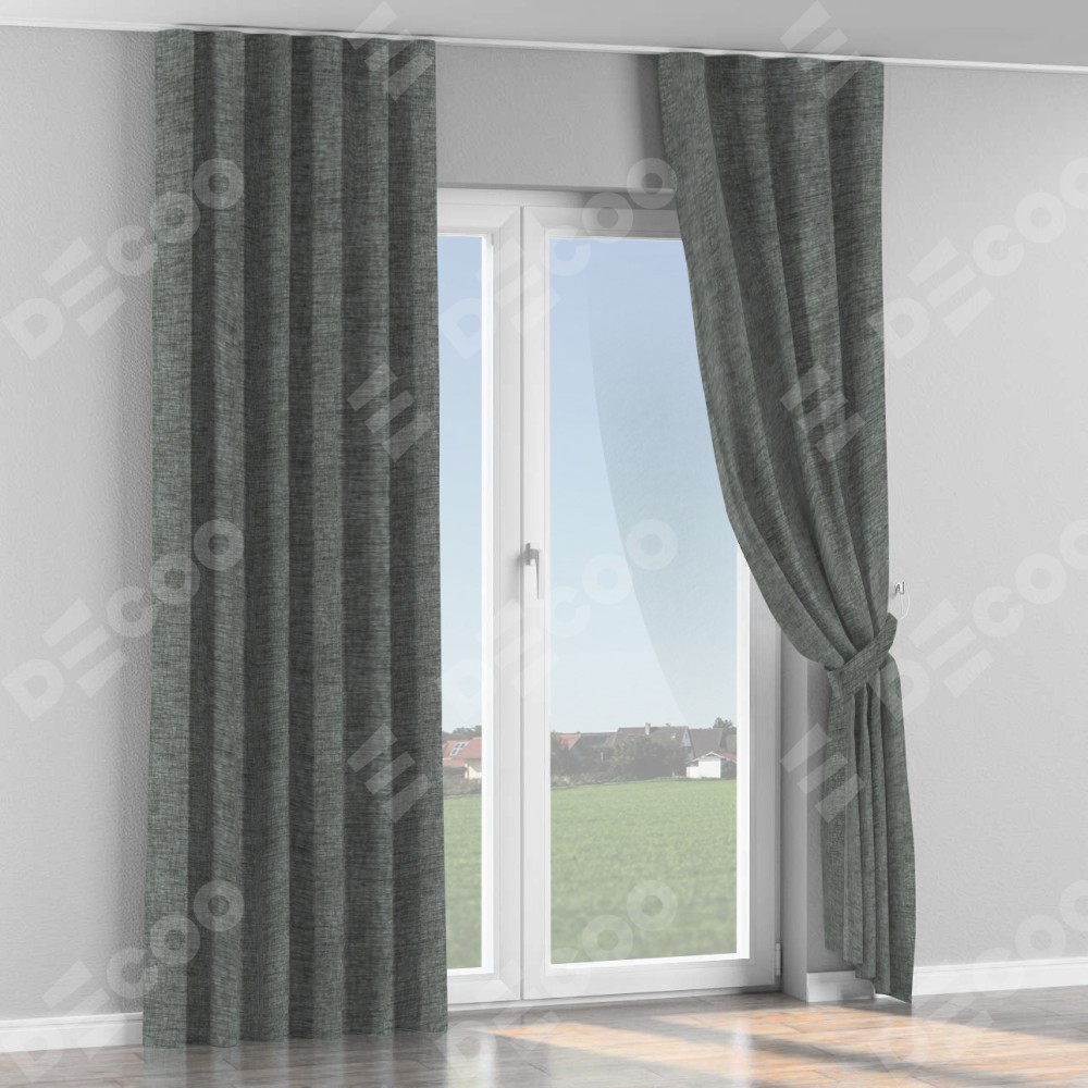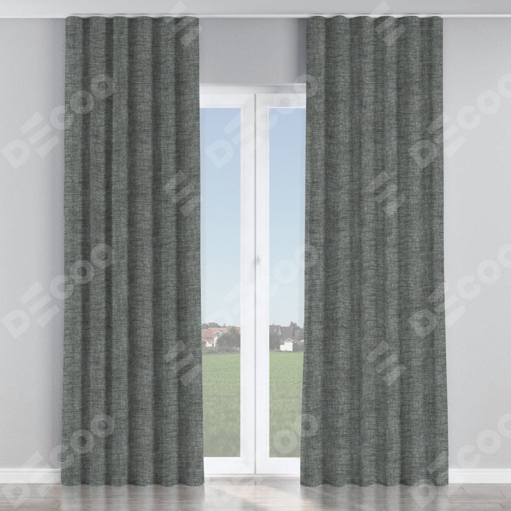 Комплект прямых штор, от производителя «Cortin», пошиты из ткани рогожка димаут тёмно-серый, артикул ткани 91029. С изнаночной стороны в верхней части штор пристрачивается шторная лента с декоративными складками «Волна». Для создания элегантных складок прямые шторы шьются по стандарту с коэффициентом 1:2 (на 100 см. ширины проёма 200 см. ширины ткани).