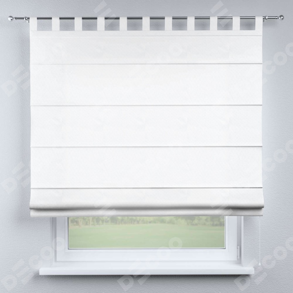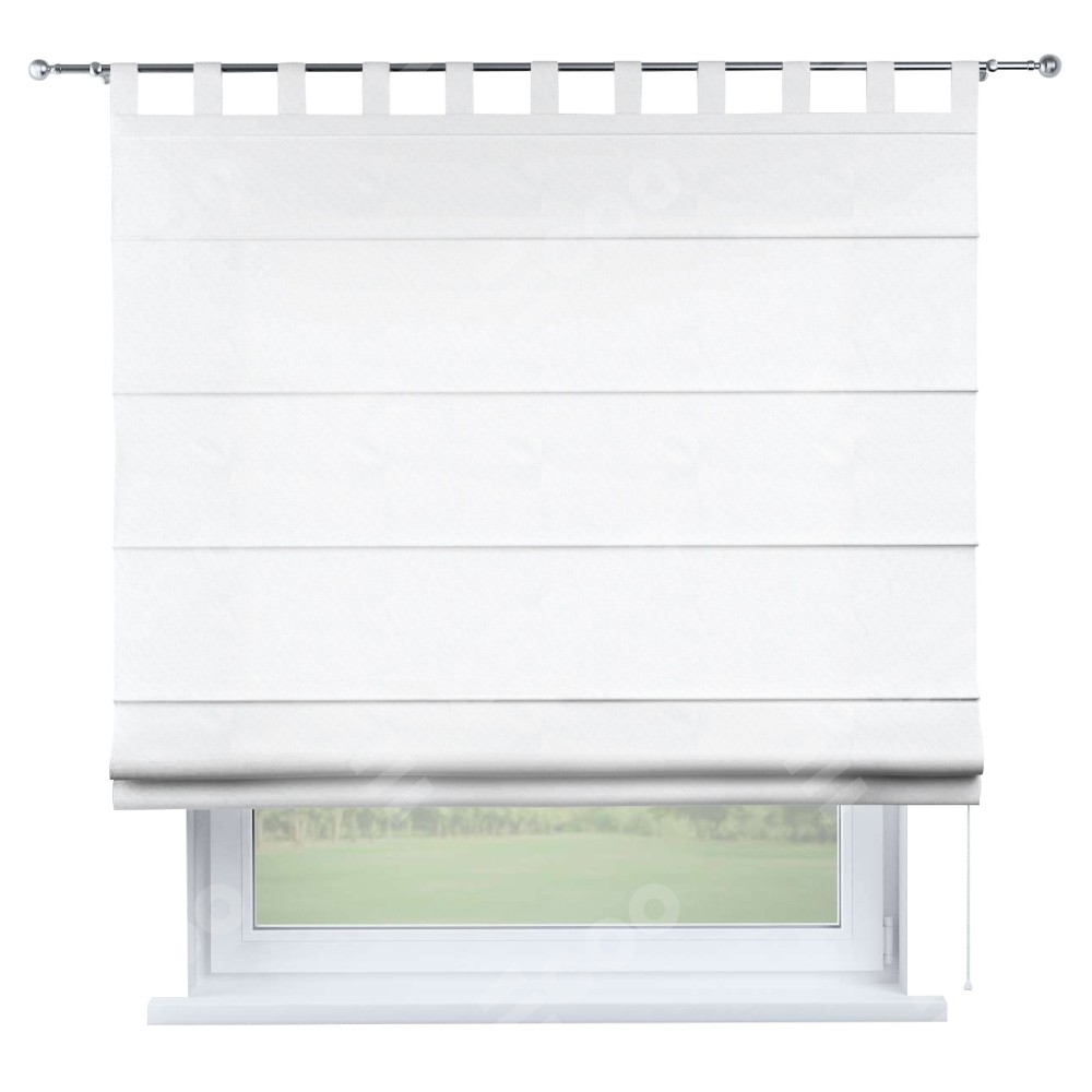 Римская штора производителя «Cortin», используется для проёма, пошита из ткани вельвет белоснежный, артикул ткани 92698. Данная модель пошита на петлях, комплектуется на выбор круглым карнизом и подходит для монтажа на стену. Римская штора на петлях имеет простую систему регулировки высоты, отличительным преимуществом данной модели является простой способ монтажа. Достаточно повесить ее на трубу и штора готова!