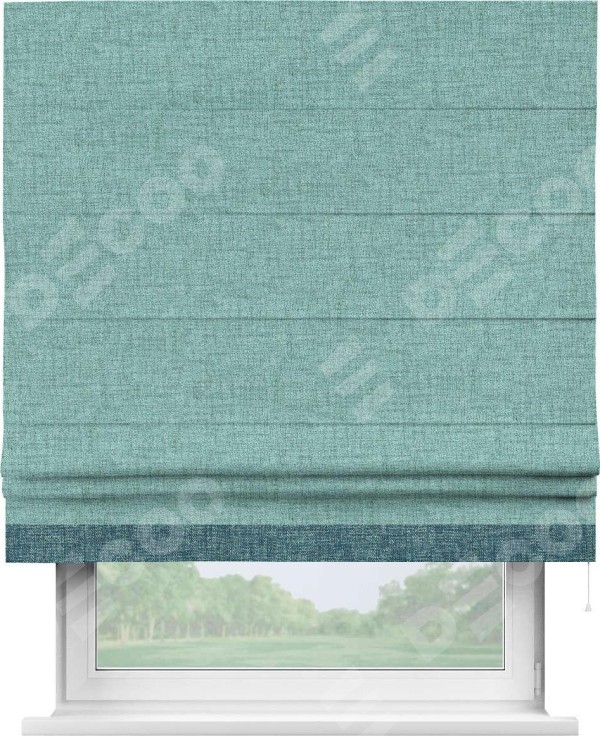 Римская штора «Кортин» для проёма, рогожка димаут аквамариновый крайола, с кантом Джестер