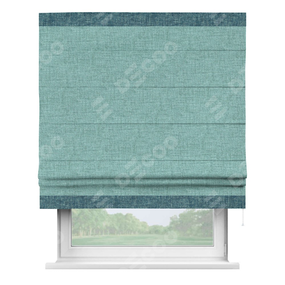 Римская штора «Кортин» для проёма, рогожка димаут аквамариновый крайола, с кантом Горизонт