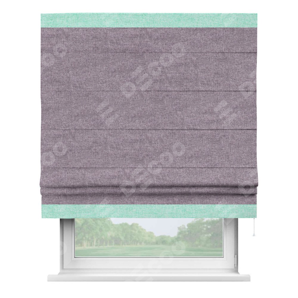 Римская штора пошита из ткани лён кашемир фиолетовый, артикул: 17211, с отделкой кантом «Горизонт» предлагает уникальное дизайнерское решение, при котором кант располагается только вверху и снизу шторы. Такое решение делает акцент на горизонтальных линиях, визуально расширяя пространство и придавая окну более строгий и организованный вид. Отделка кантом в этих ключевых местах не только украшает штору, но и способствует её долговечности, защищая наиболее уязвимые к износу края.