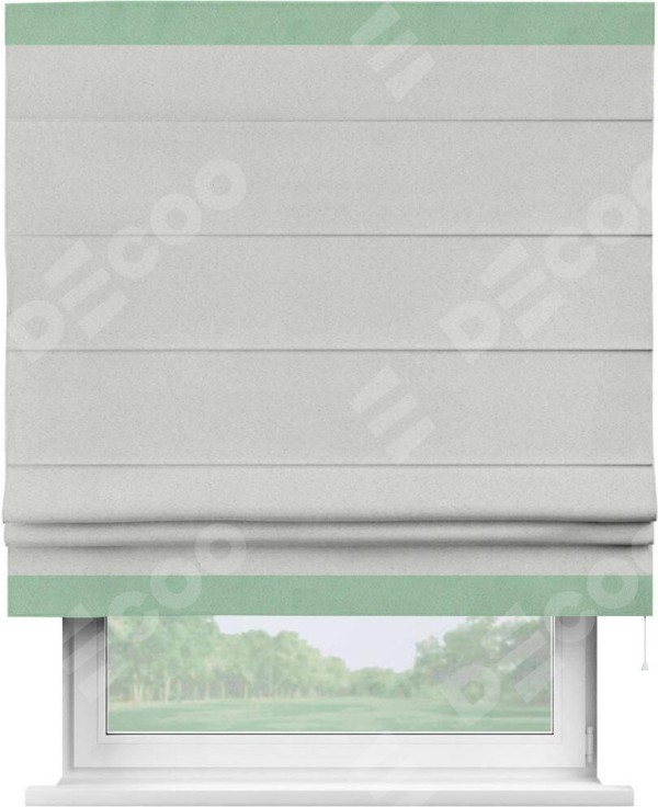 Римская штора пошита из ткани однотонный блэкаут милк, артикул: 23, с отделкой кантом «Горизонт» предлагает уникальное дизайнерское решение, при котором кант располагается только вверху и снизу шторы. Такое решение делает акцент на горизонтальных линиях, визуально расширяя пространство и придавая окну более строгий и организованный вид. Отделка кантом в этих ключевых местах не только украшает штору, но и способствует её долговечности, защищая наиболее уязвимые к износу края.