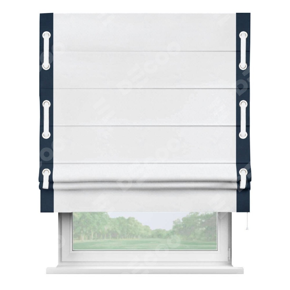 Римская штора «Кортин» для проёма, вельвет белоснежный с кантом Стрим Дуо (люверсы с пояском)