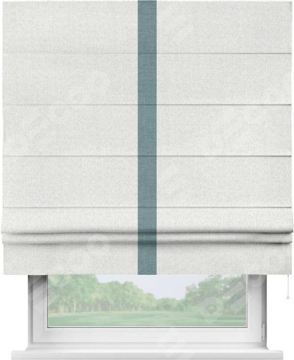 Римская штора пошита из ткани лён шампань, артикул: 91399, с отделкой кантом «Хайвэй» представляет собой уникальное и смелое дизайнерское решение, где кант расположен вертикально посередине шторы. Этот дизайн не только выделяет штору среди других вариантов оформления окон, но и создает интересный визуальный акцент, привлекая внимание к центру окна и разделяя штору на визуальные зоны. Такой нестандартный подход добавляет динамичности интерьеру и может быть использован для подчеркивания особенностей оформления помещения.