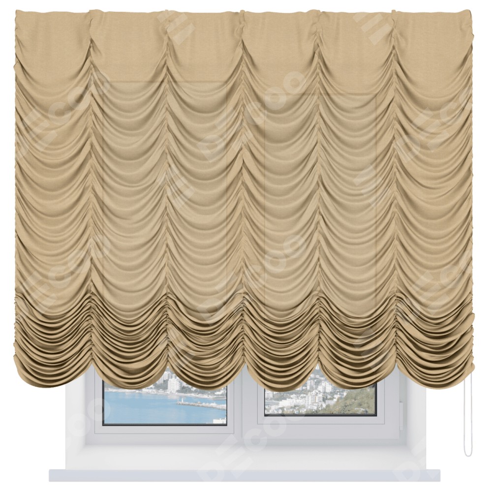 Французская штора производителя «Cortin», используется для проёма, пошита из ткани лён тёмно-бежевый, артикул ткани 53433. Имеет универсальный механизм и подходит для монтажа: на потолок и на стену.