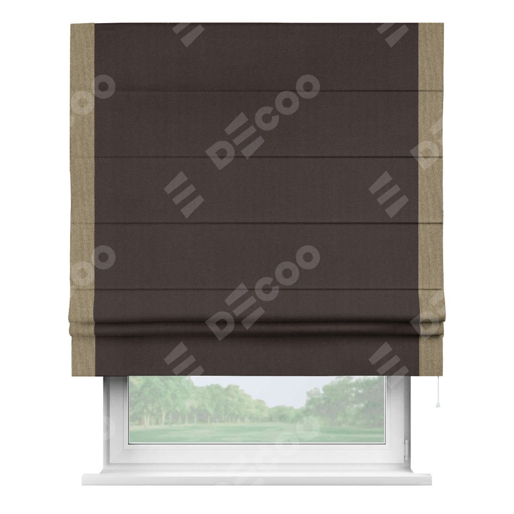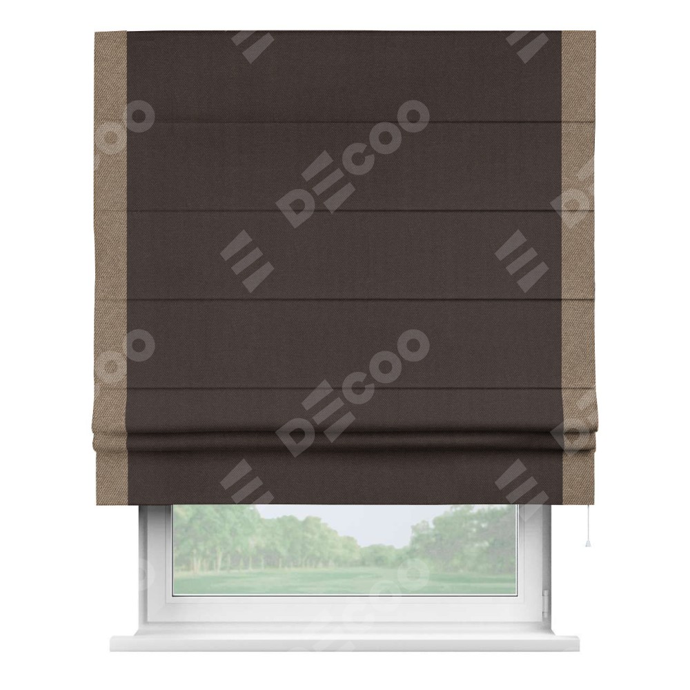 Римская штора «Кортин» для проема, лён димаут венге с кантом Стрим Дуо