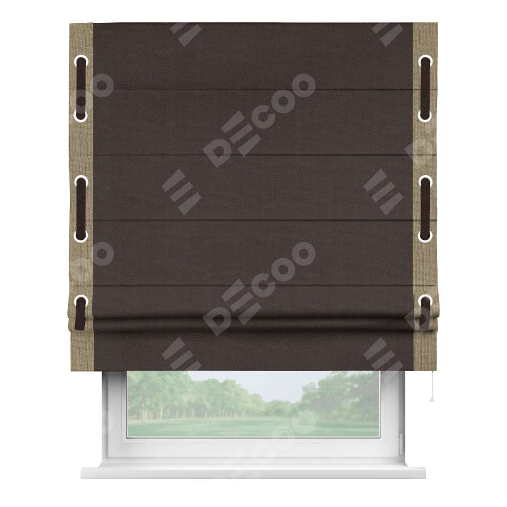 Римская штора «Кортин» для проема, лён димаут венге с кантом Стрим Дуо (люверсы с пояском)
