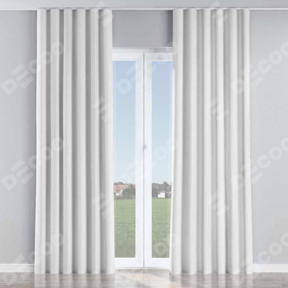 Комплект прямых штор, от производителя «Cortin», пошиты из ткани вайтаут однотонная белая, артикул ткани 93935. С изнаночной стороны в верхней части штор пристрачивается шторная лента с декоративными складками «Волна». Для создания элегантных складок рекомендуемый коэффициент 1:2 (на 100 см. ширины проёма 200 см. ширины ткани). Важно! Ширина штор указана без учёта коэффициента сборки!