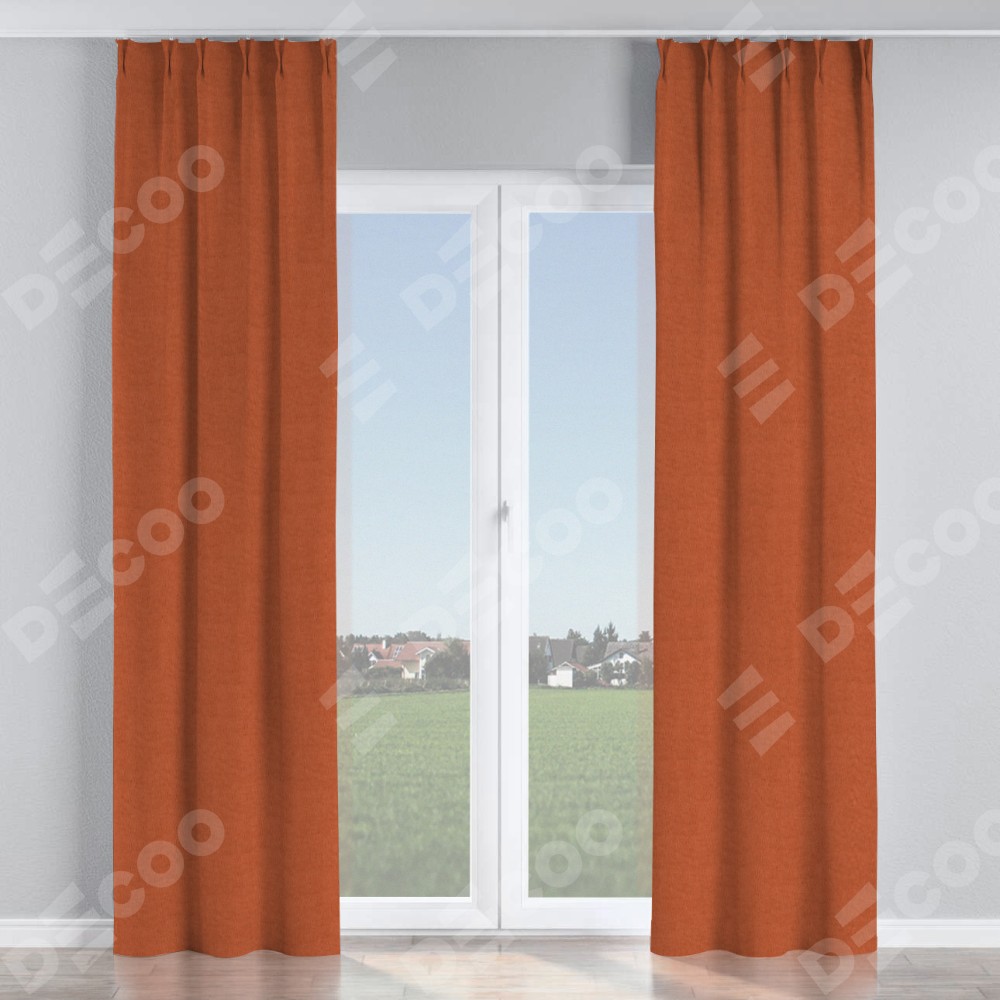Комплект прямых штор, от производителя «Cortin», пошиты из ткани канвас терракотовый, артикул ткани v-107. С изнаночной стороны в верхней части штор пристрачивается шторная лента с декоративными складками «Кустик». Для создания элегантных складок рекомендуемый коэффициент 1:2 (на 100 см. ширины проёма 200 см. ширины ткани). Важно! Ширина штор указана без учёта коэффициента сборки!