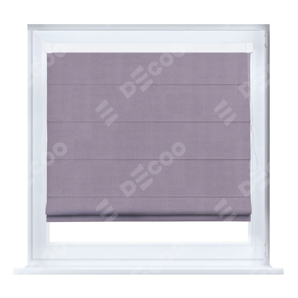 Римская штора производителя «Cortin», устанавливается на створку окна, пошита из ткани блэкаут однотонный лиловый, артикул 91577. Штора шьётся по индивидуальным размерам, для данного типа римской шторы возможная ширина от 35 до 150 см., высота до 250 см.