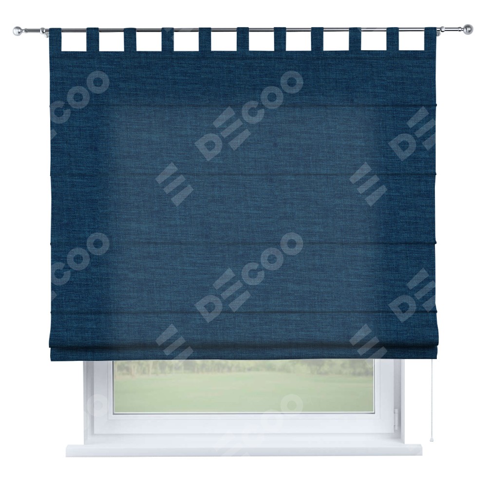 Римская штора производителя «Cortin», используется для проёма, пошита из ткани лён синий, артикул ткани 104496. Данная модель пошита на петлях, комплектуется на выбор круглым карнизом и подходит для монтажа на стену. Римская штора на петлях имеет простую систему регулировки высоты, отличительным преимуществом данной модели является простой способ монтажа. Достаточно повесить ее на трубу и штора готова!