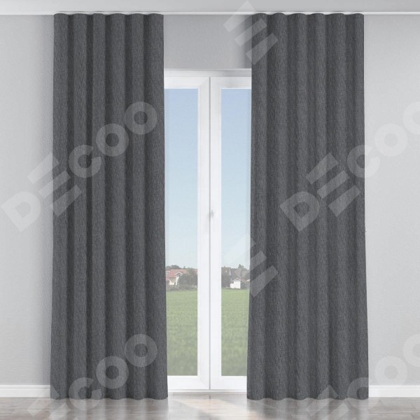 Комплект прямых штор, от производителя «Cortin», пошиты из ткани лён димаут графит, артикул ткани 140644. С изнаночной стороны в верхней части штор пристрачивается шторная лента с декоративными складками «Волна». Для создания элегантных складок рекомендуемый коэффициент 1:2 (на 100 см. ширины проёма 200 см. ширины ткани). Важно! Ширина штор указана без учёта коэффициента сборки!