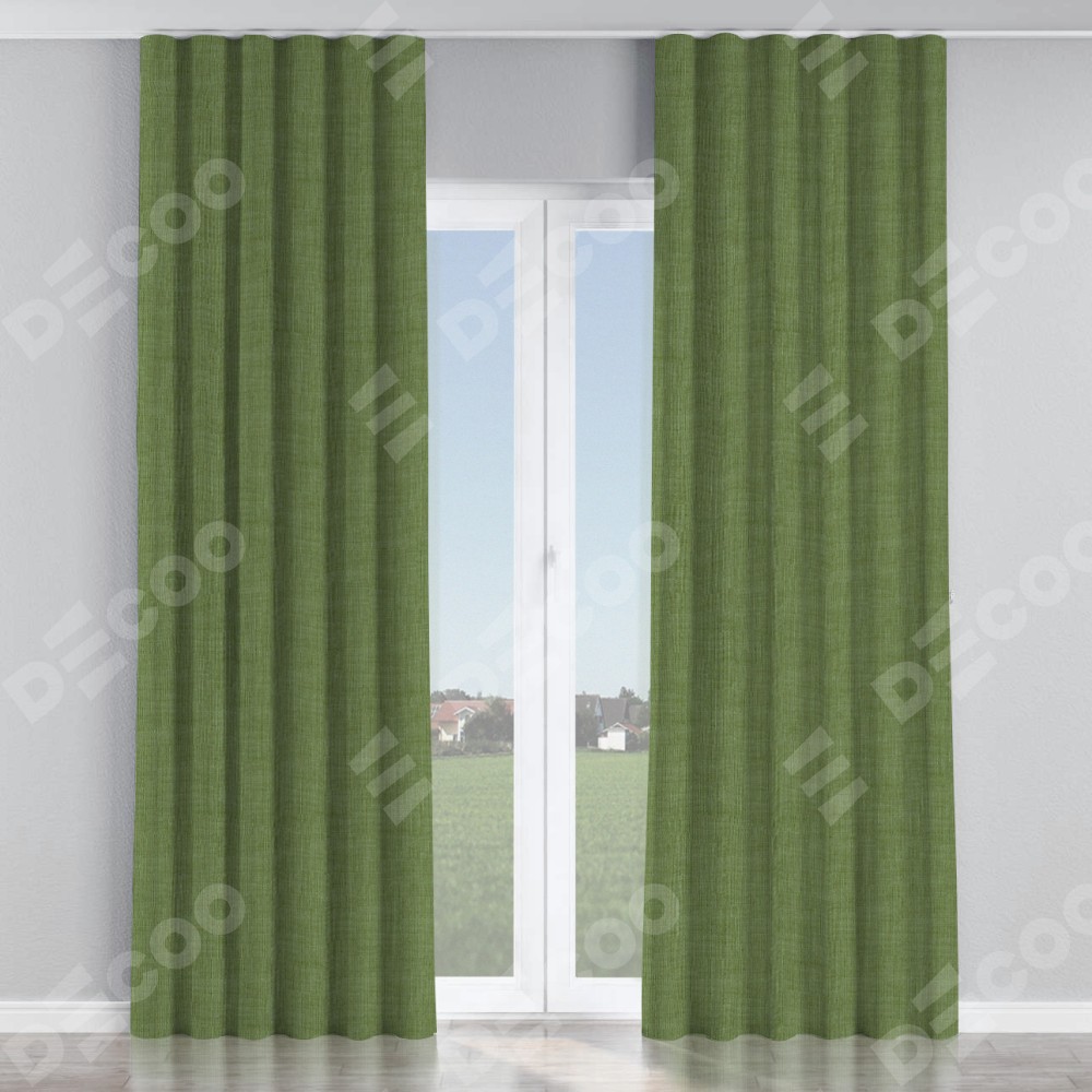 Комплект прямых штор, от производителя «Cortin», пошиты из ткани лён зелёный, артикул ткани 131547. С изнаночной стороны в верхней части штор пристрачивается шторная лента с декоративными складками «Волна». Для создания элегантных складок рекомендуемый коэффициент 1:2 (на 100 см. ширины проёма 200 см. ширины ткани). Важно! Ширина штор указана без учёта коэффициента сборки!