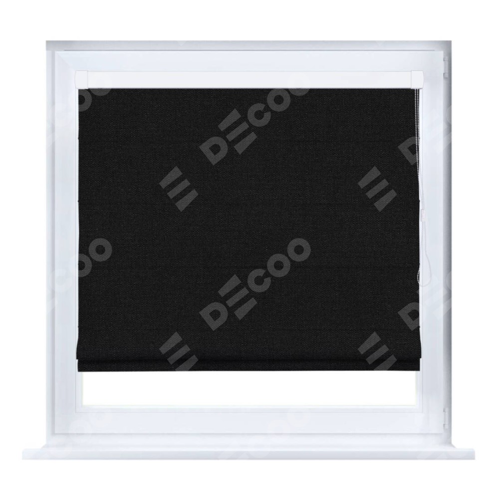 Римская штора производителя «Cortin», устанавливается на створку окна, пошита из ткани лён черный, артикул 140815. Штора шьётся по индивидуальным размерам, для данного типа римской шторы возможная ширина от 35 до 150 см., высота до 250 см.