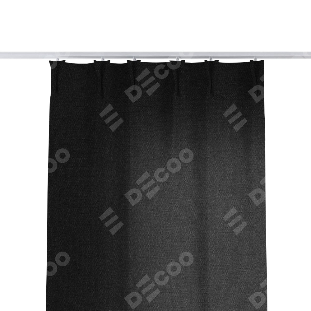 Комплект прямых штор, от производителя «Cortin», пошиты из ткани лён черный, артикул ткани 140815. С изнаночной стороны в верхней части штор пристрачивается шторная лента с декоративными складками «Кустик». Для создания элегантных складок рекомендуемый коэффициент 1:2 (на 100 см. ширины проёма 200 см. ширины ткани). Важно! Ширина штор указана без учёта коэффициента сборки!