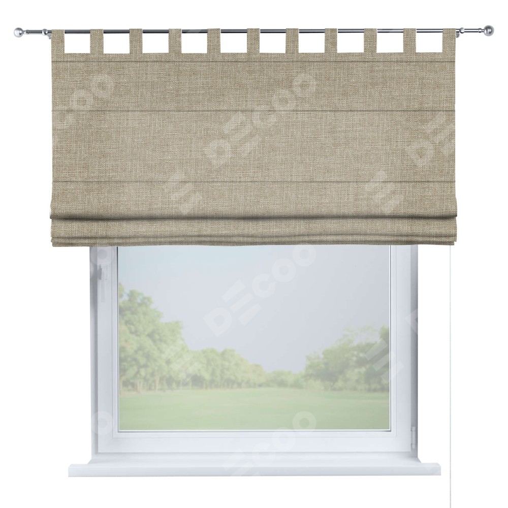 Римская штора производителя «Cortin», используется для проёма, пошита из ткани лён бежевый, артикул ткани 143839. Данная модель пошита на петлях, комплектуется на выбор круглым карнизом и подходит для монтажа на стену. Римская штора на петлях имеет простую систему регулировки высоты, отличительным преимуществом данной модели является простой способ монтажа. Достаточно повесить ее на трубу и штора готова!