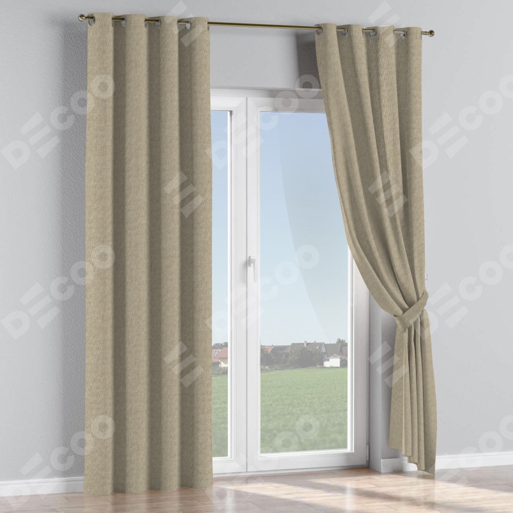 Комплект прямых штор, от производителя «Cortin», пошиты из ткани лён бежевый, артикул ткани 143839. Данная модель пошита на люверсах, комплектуется на выбор круглым карнизом и подходит для монтажа на стену или потолок. Для создания элегантных складок рекомендуемый коэффициент 1:2 (на 100 см. ширины проёма 200 см. ширины ткани). Важно! Ширина штор указана без учёта коэффициента сборки!
