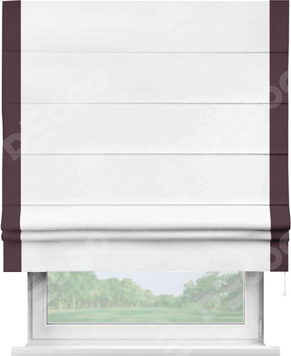 Римская штора «Кортин» для проёма, вайтаут однотонная белая с кантом Стрим Дуо