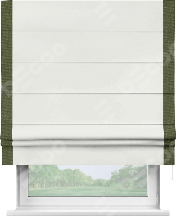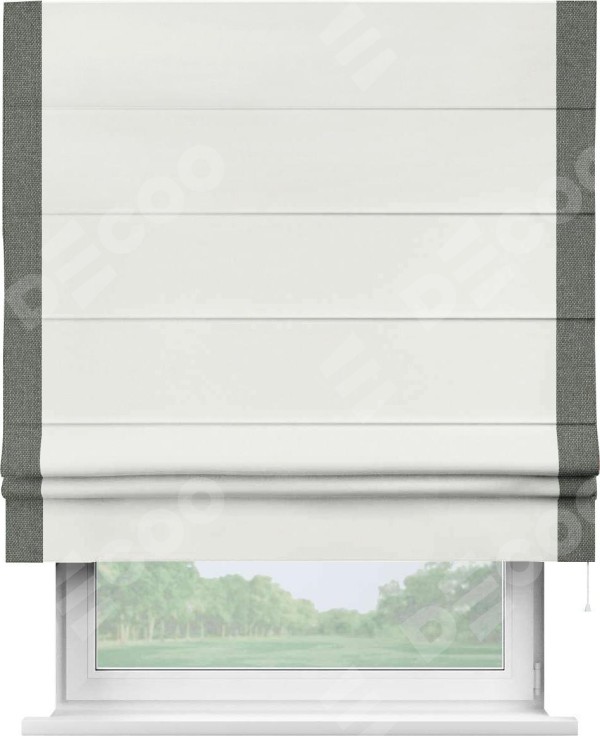 Римская штора «Кортин» для проема, лён димаут молочный с кантом Стрим Дуо