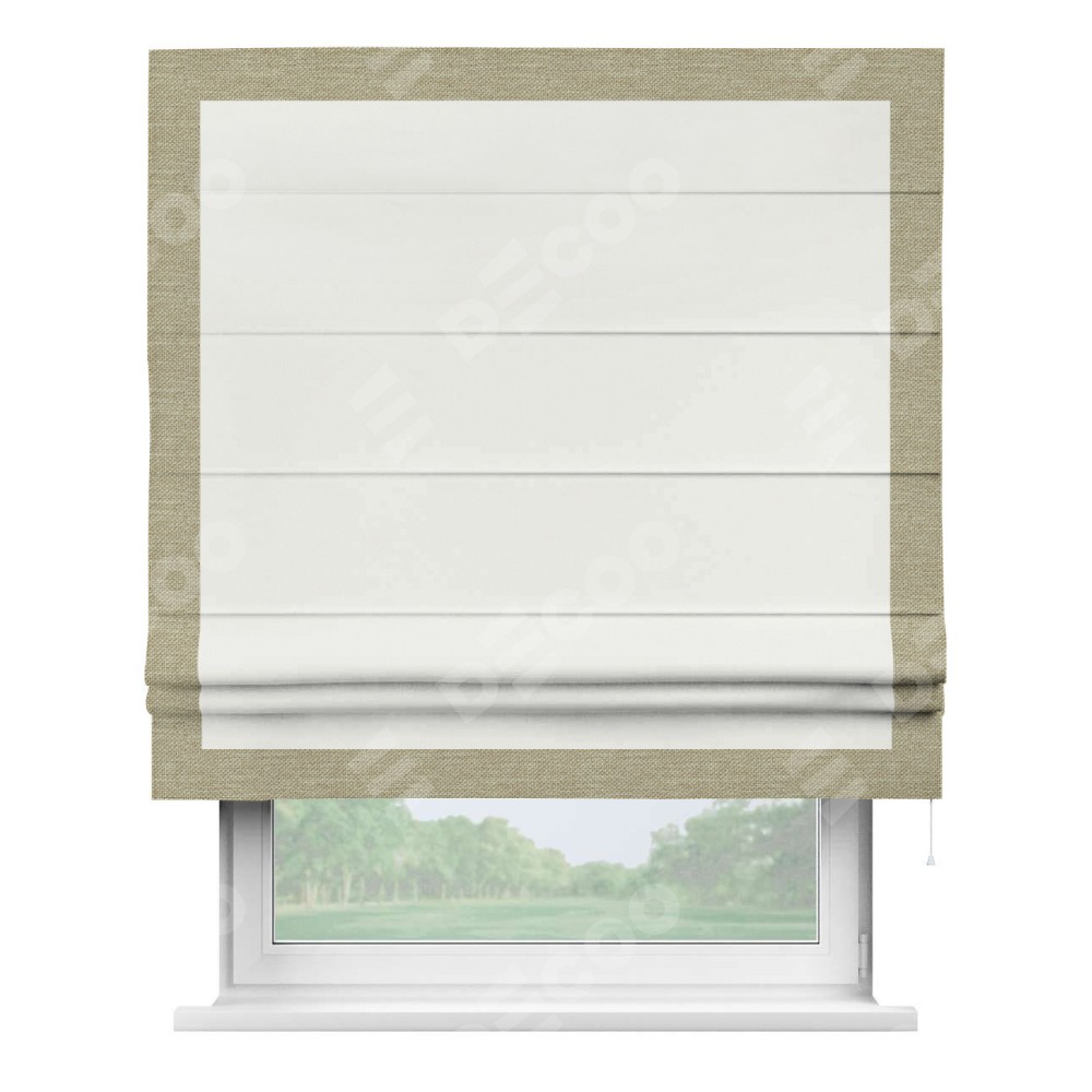 Классическая римская штора производителя «Cortin», пошита из ткани лён димаут молочный, артикул: 29. Имеет универсальный механизм и подходит для монтажа: на потолок, на стену и в нишу.