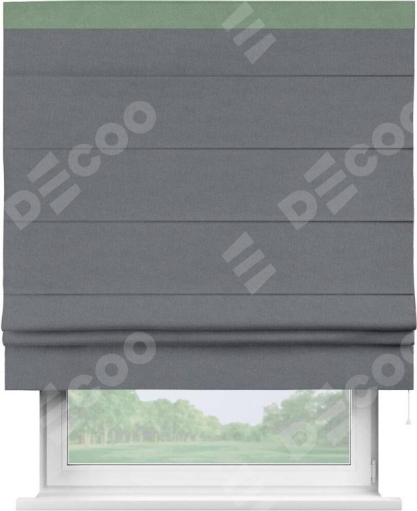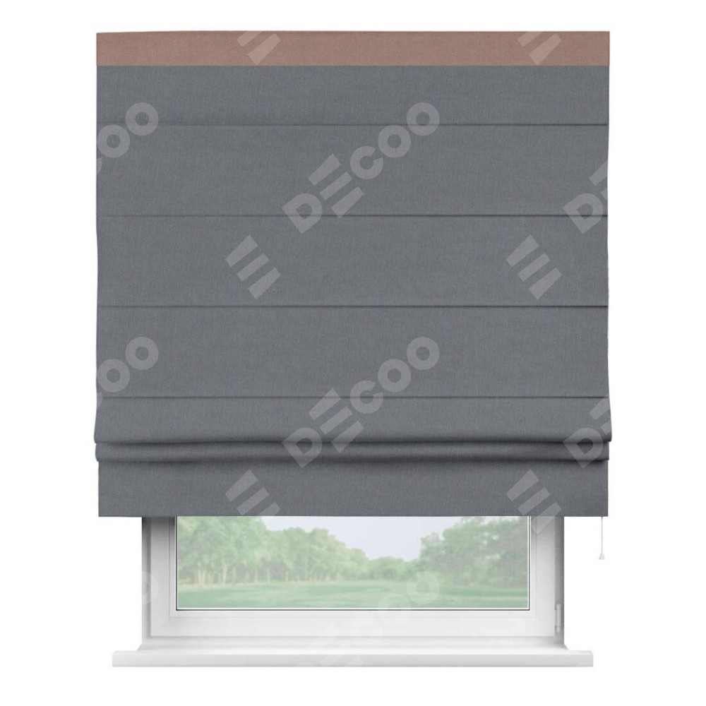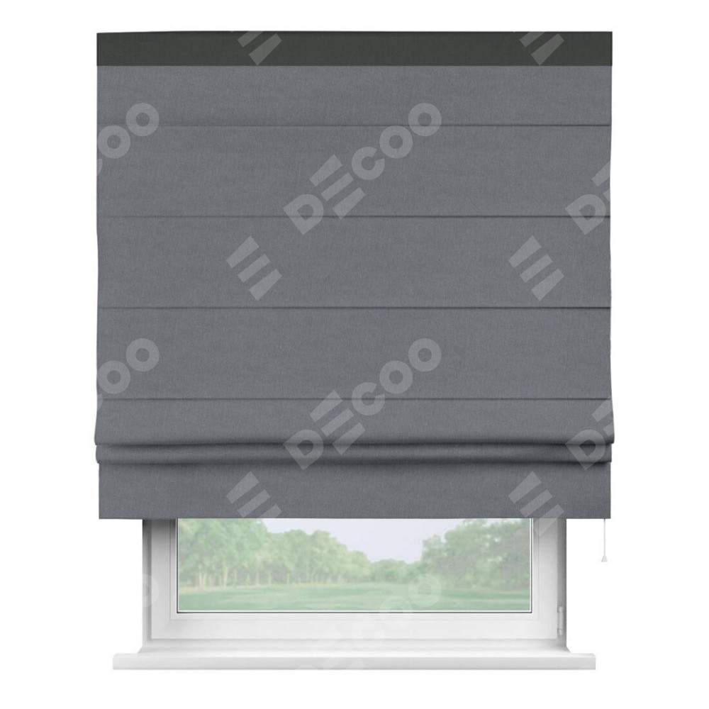 Классическая римская штора производителя «Cortin», пошита из ткани лён блэкаут тёмно-серый, артикул: 139663. Имеет универсальный механизм и подходит для монтажа: на потолок, на стену и в нишу.