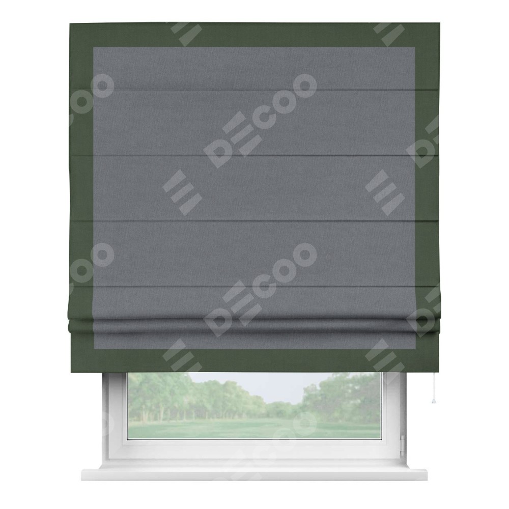 Римская штора «Кортин» с кантом Чесс, для проема, лён блэкаут тёмно-серый