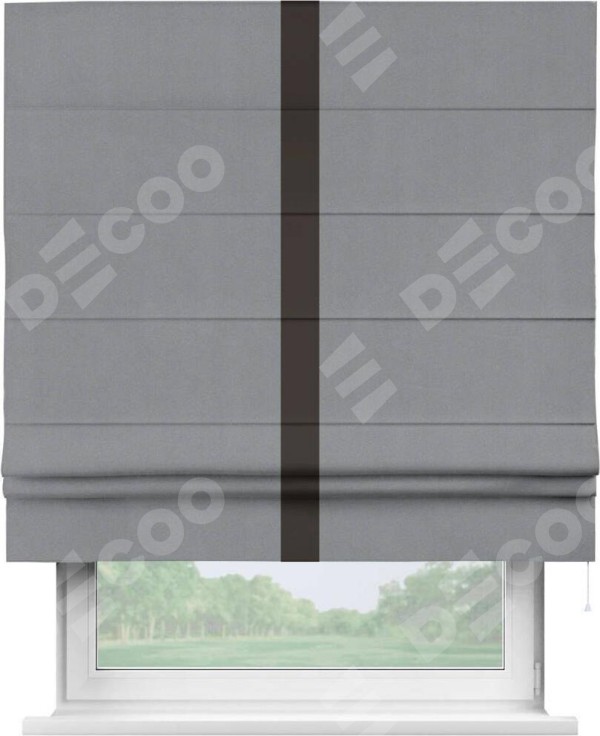 Римская штора «Кортин» для проема, блэкаут однотонный серый с кантом Хайвэй