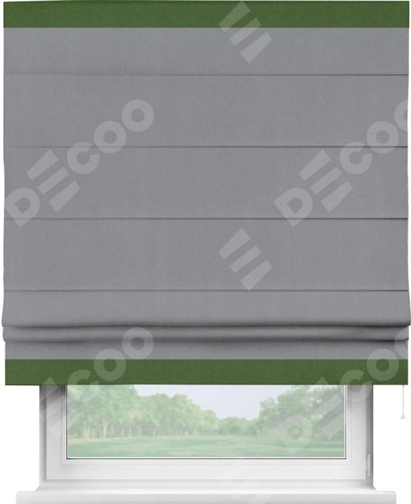 Римская штора «Кортин» для проема, блэкаут однотонный серый с кантом Горизонт