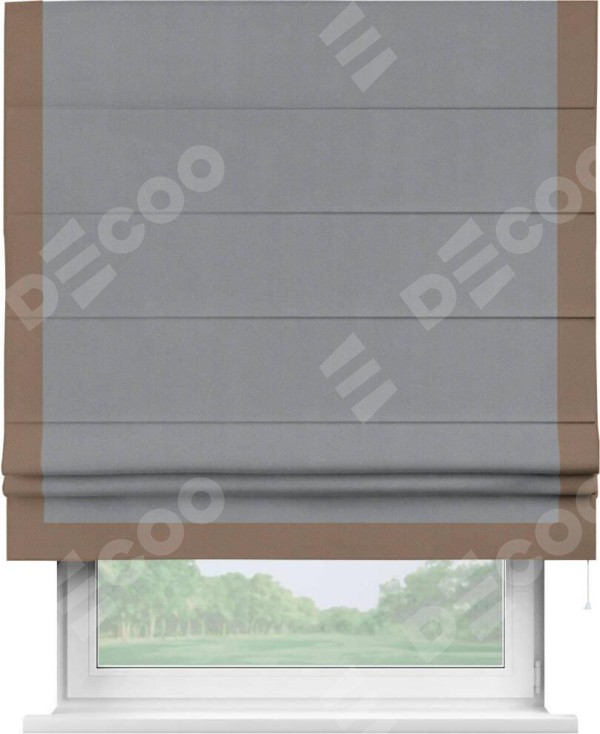 Римская штора «Кортин» для проема, блэкаут однотонный серый с кантом Виктория