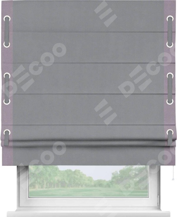 Римская штора «Кортин» для проема, блэкаут однотонный серый с кантом Стрим Дуо (люверсы с пояском)