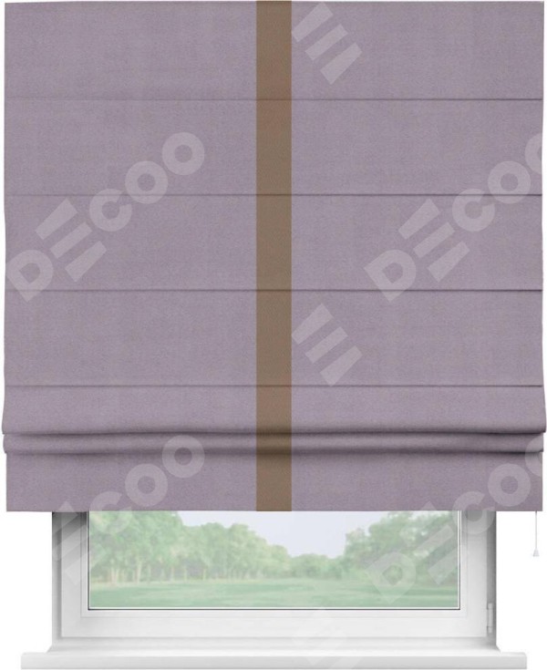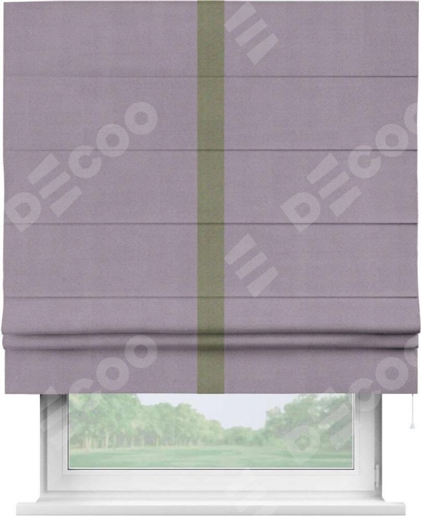 Римская штора «Кортин» для проёма, блэкаут однотонный лиловый с кантом Хайвэй